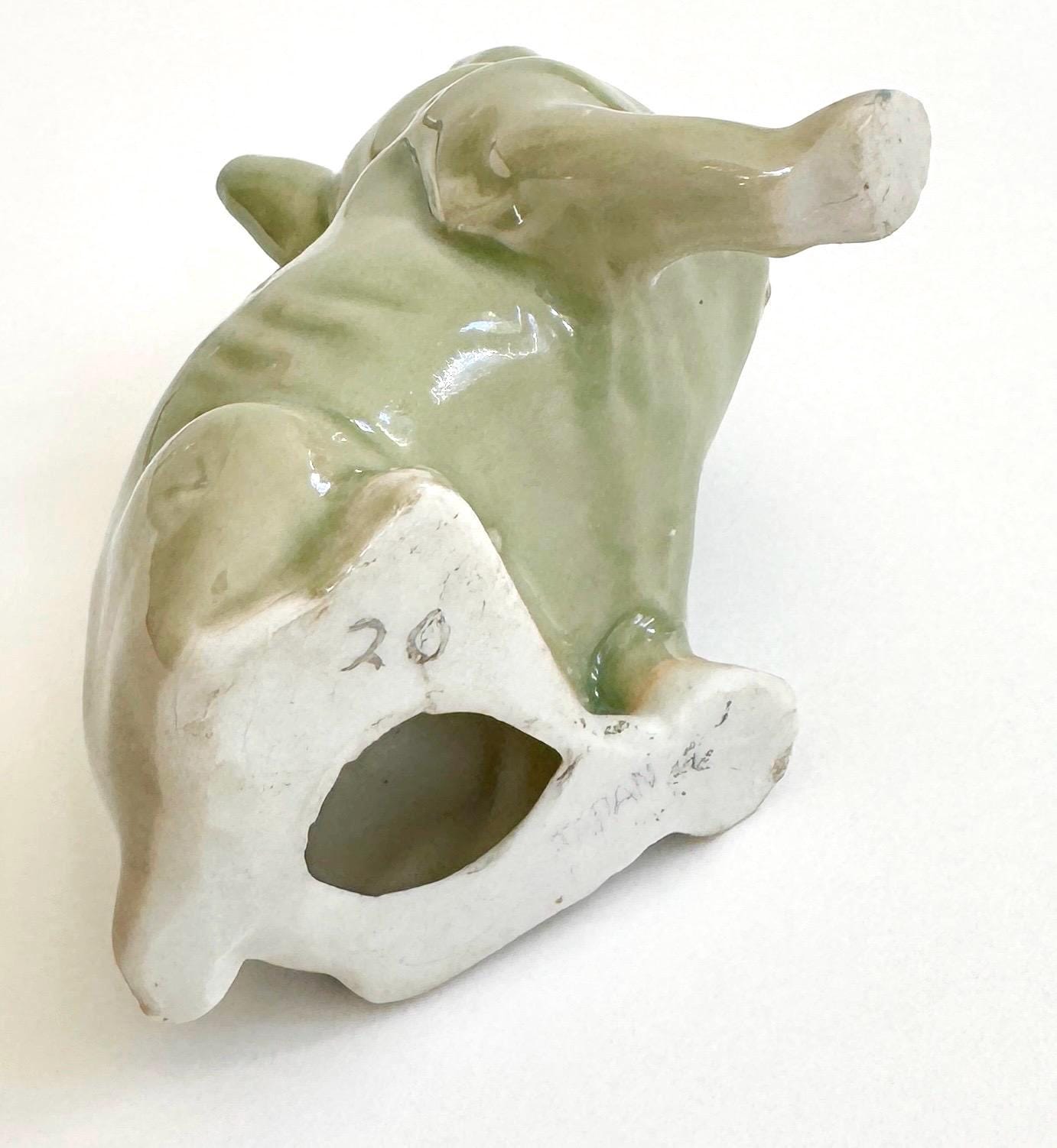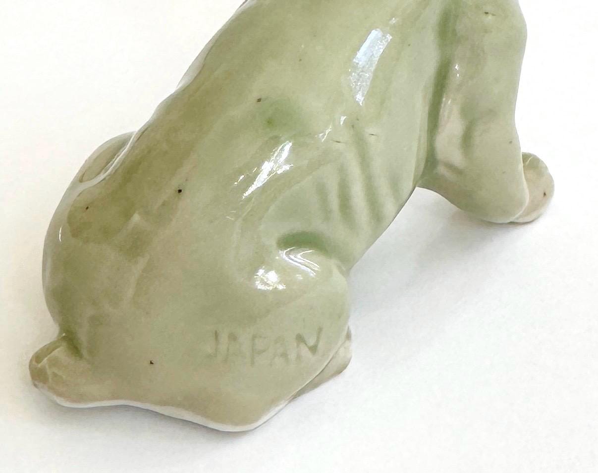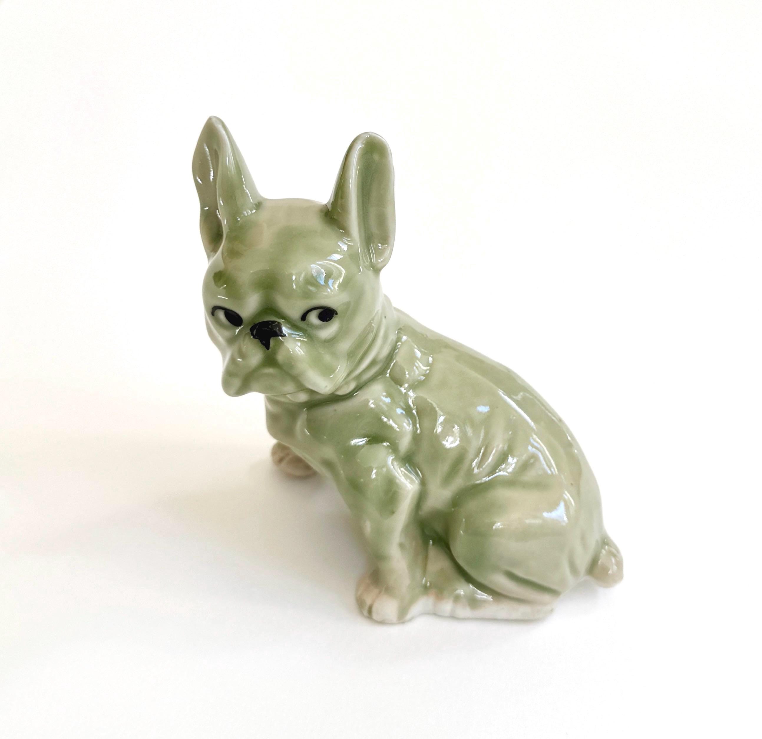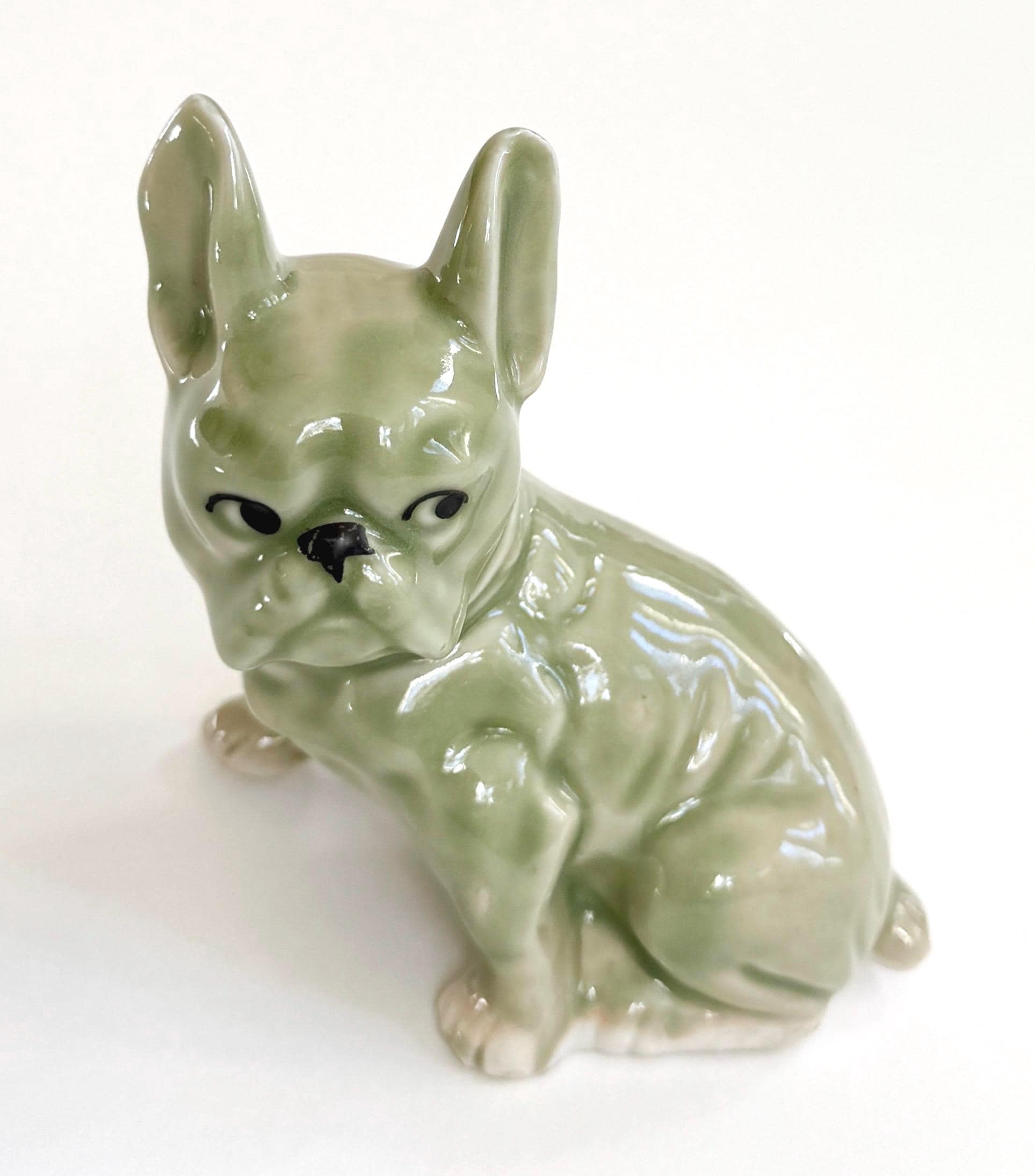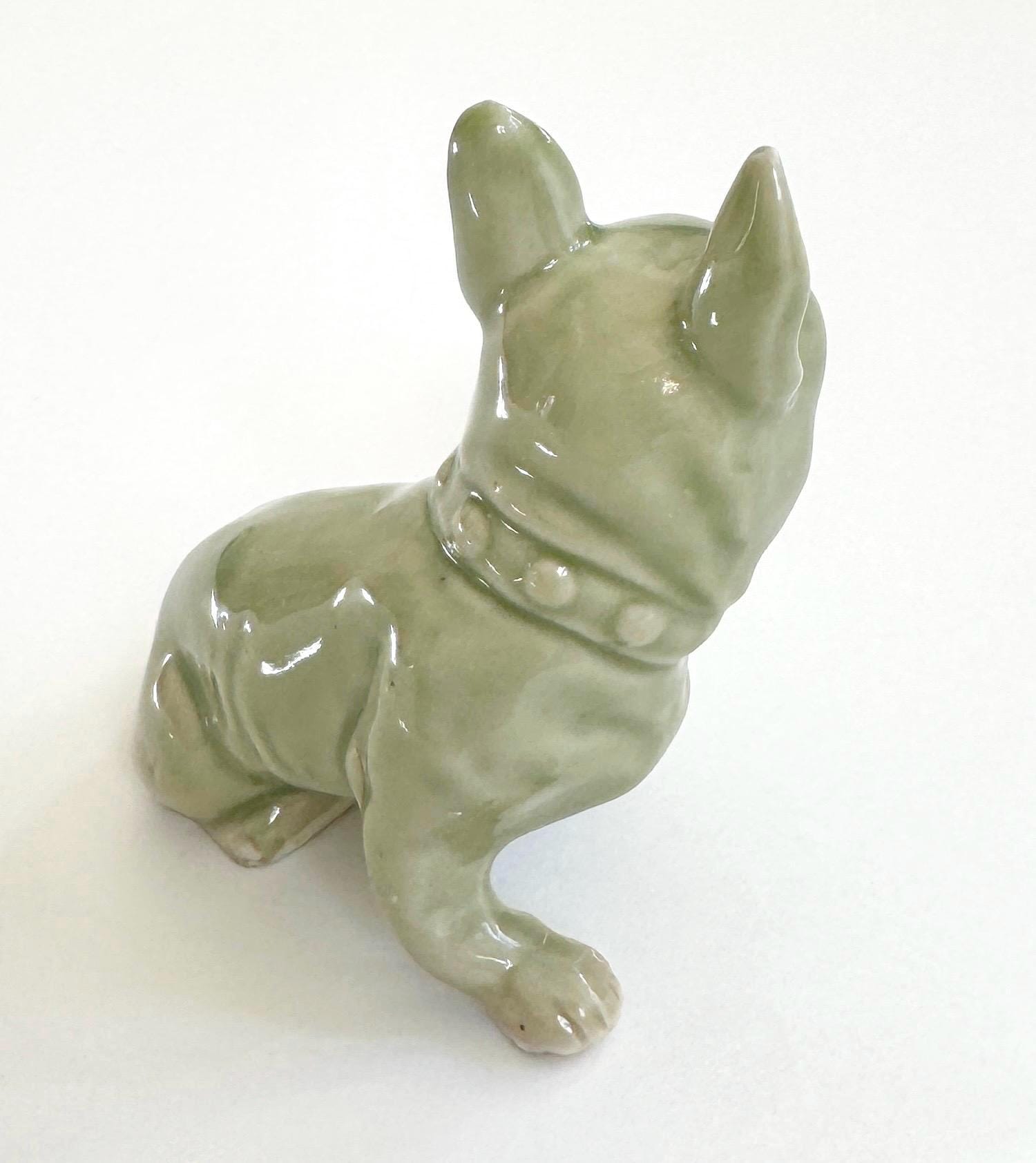 Mid Century vintage green celadon ceramic French bulldog figurine