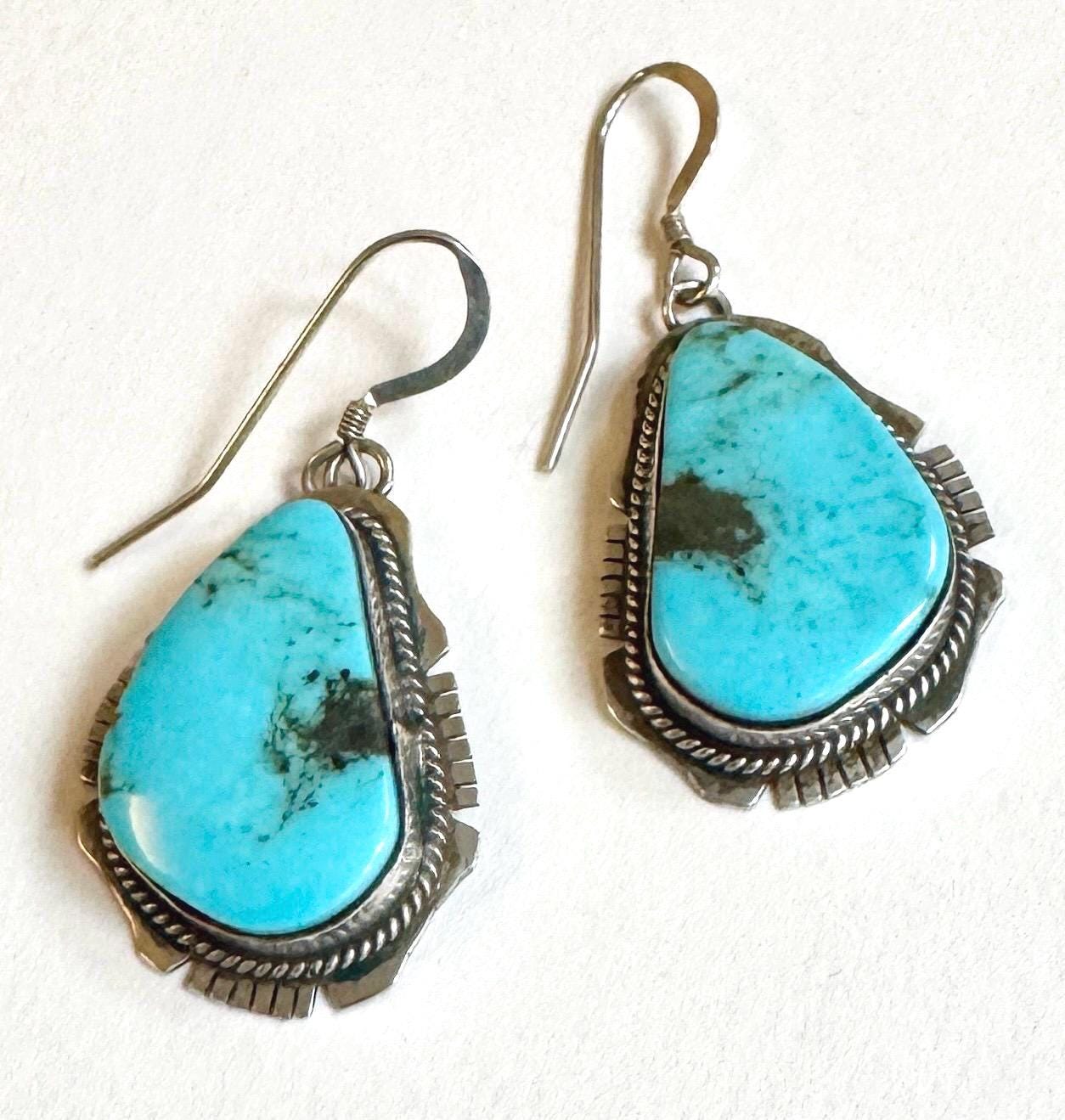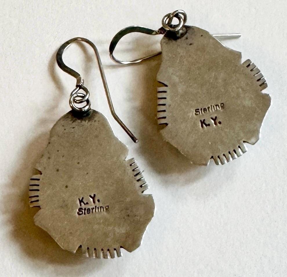 Vintage Native American sterling silver and turquoise dangle earrings by Navajo silversmith, Kay Yazzie