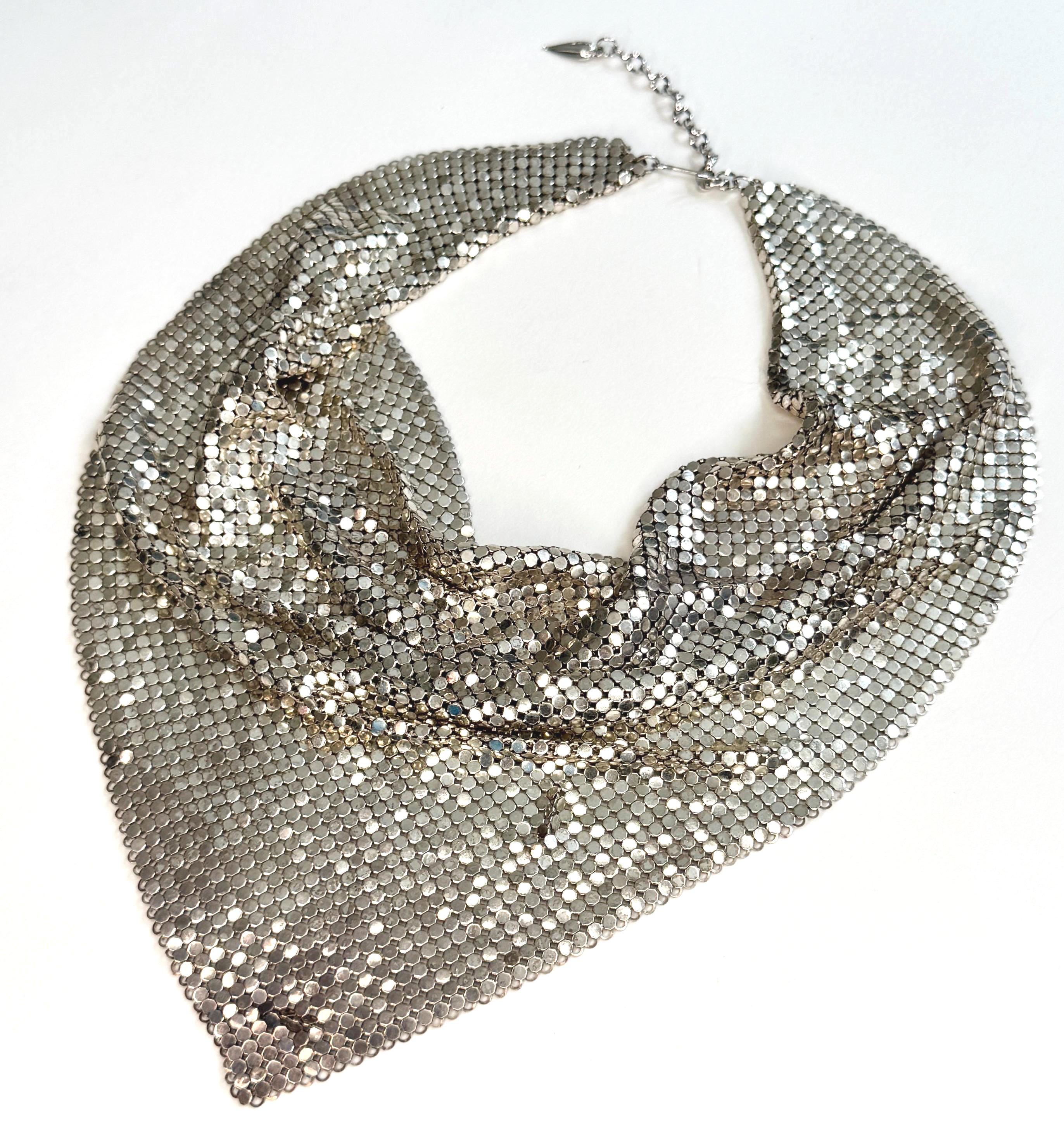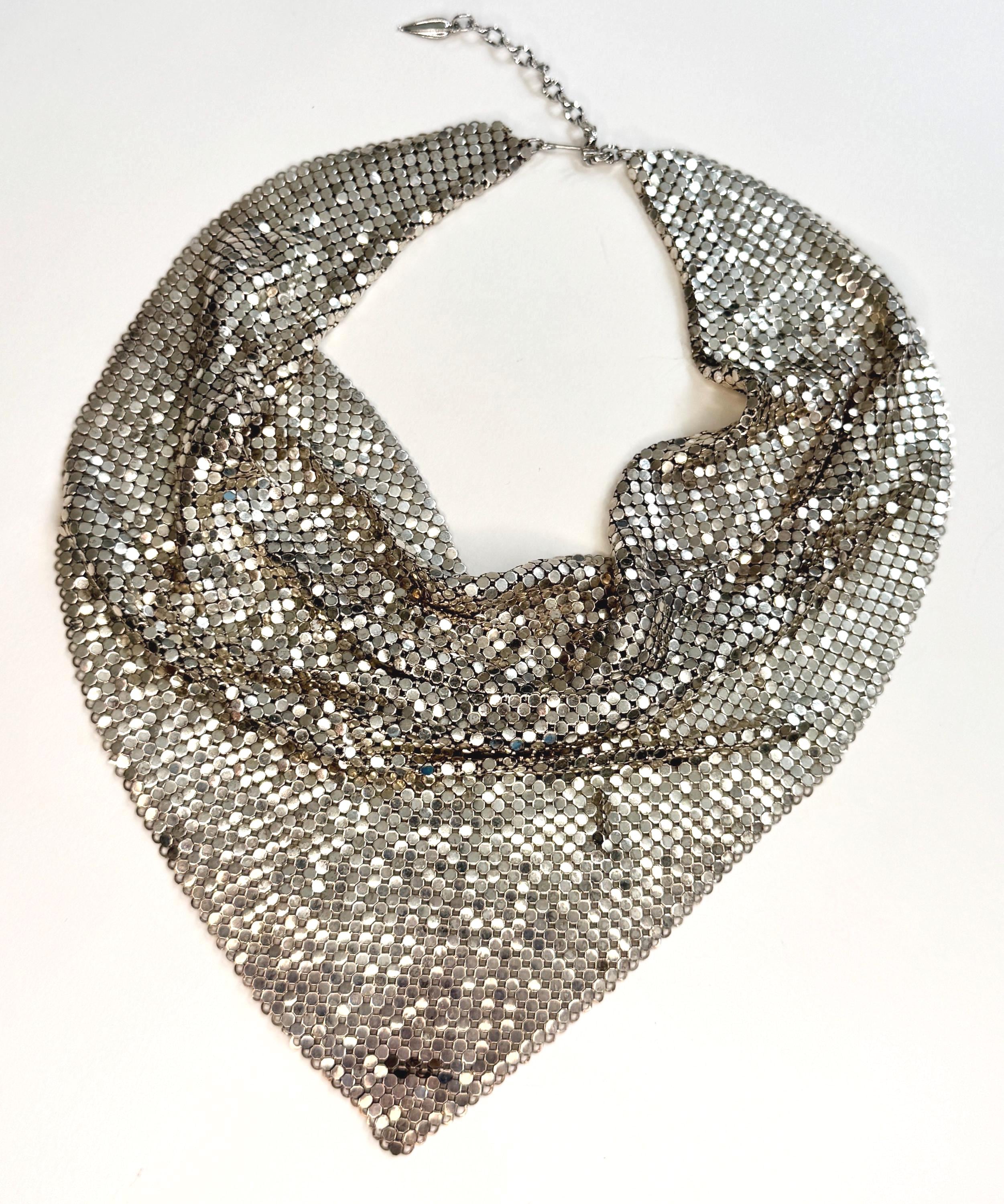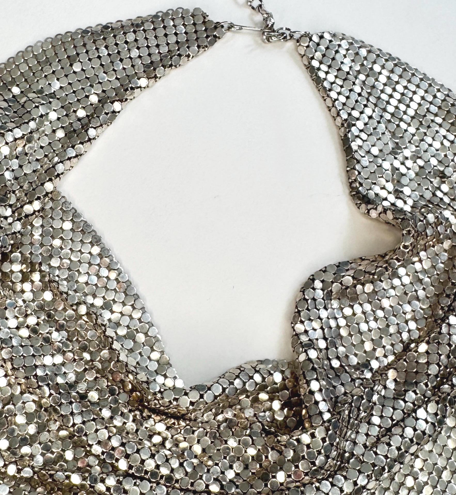 Vintage Whiting & Davis silver metal mesh bib necklace