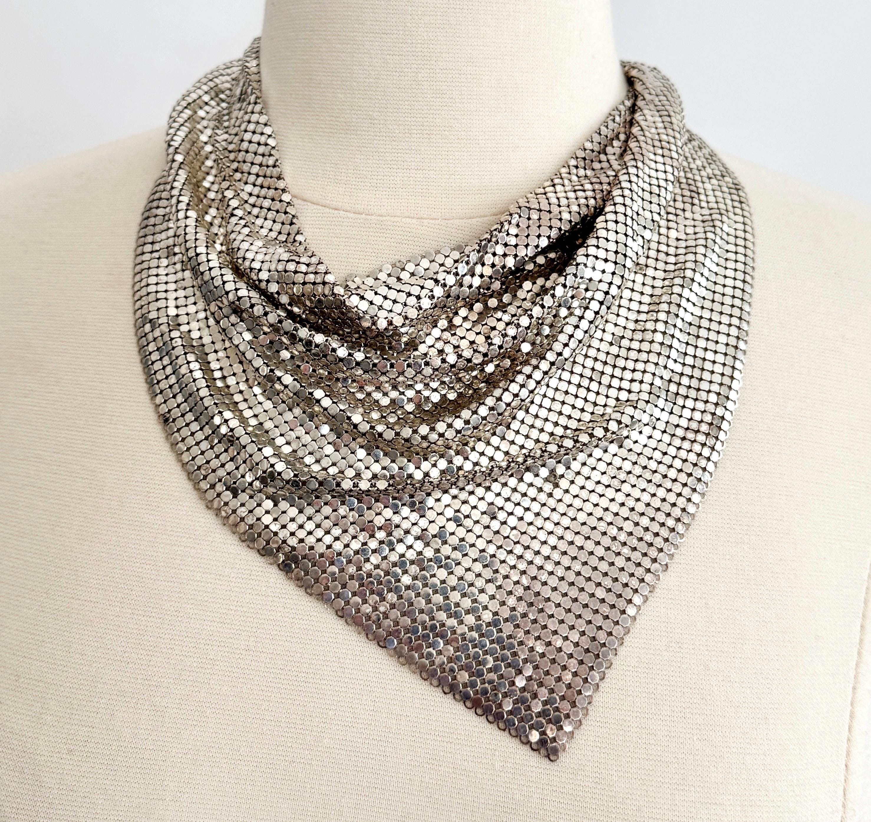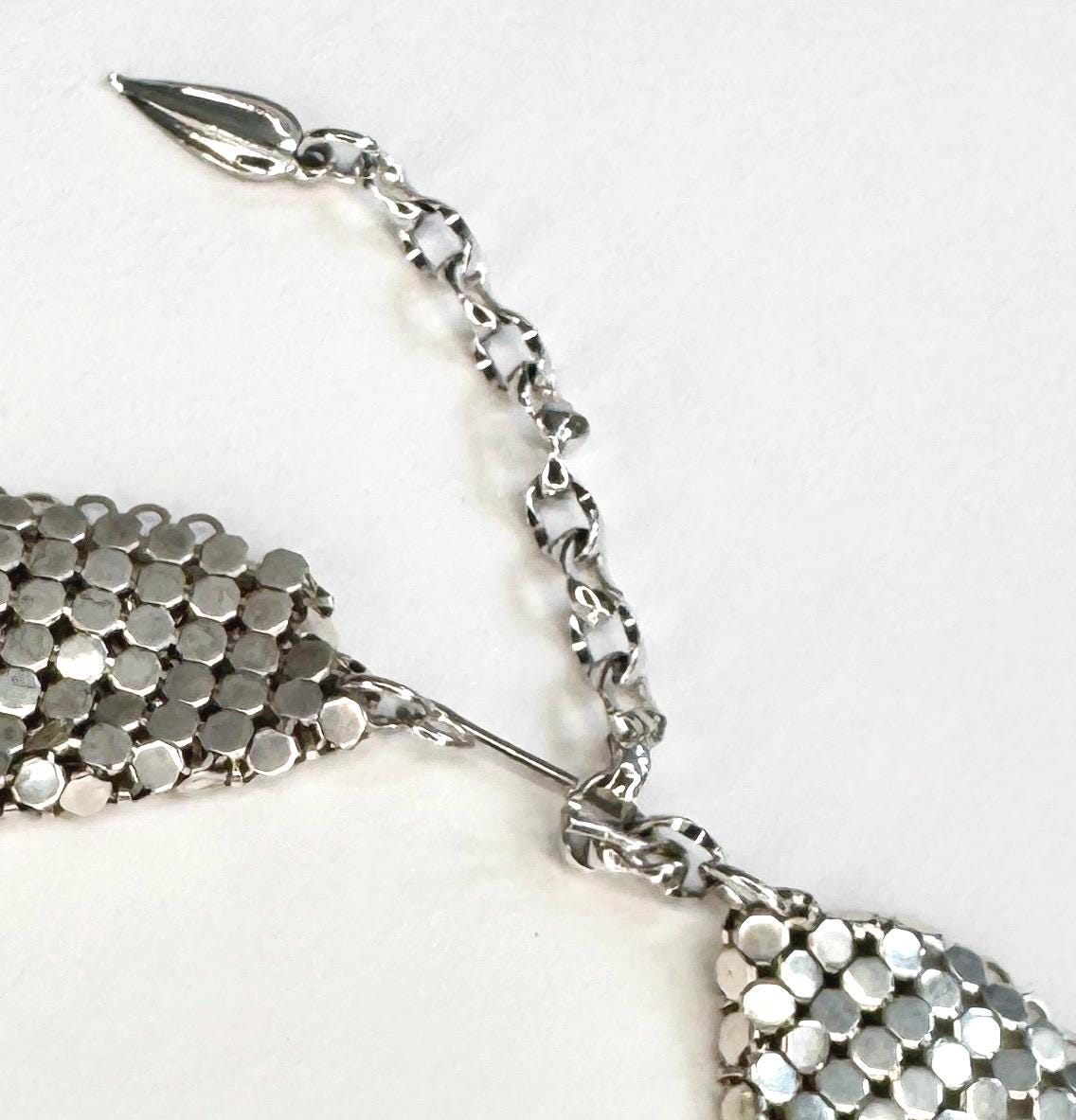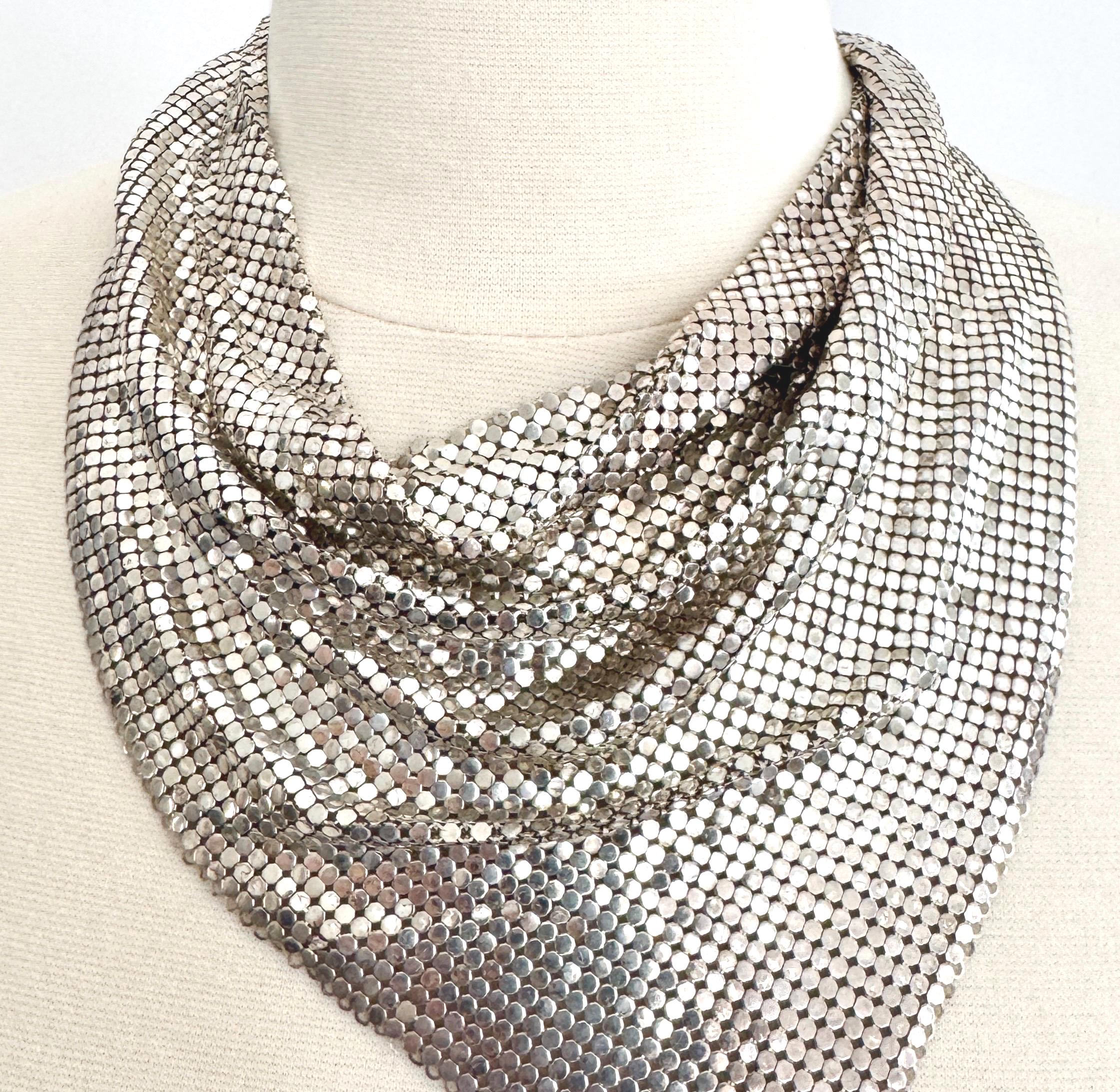 Vintage Whiting & Davis silver metal mesh bib necklace