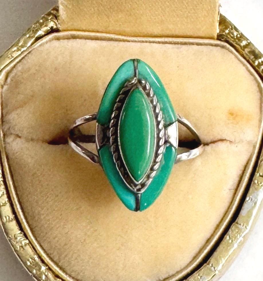 Vintage sterling silver and turquoise marquise ring