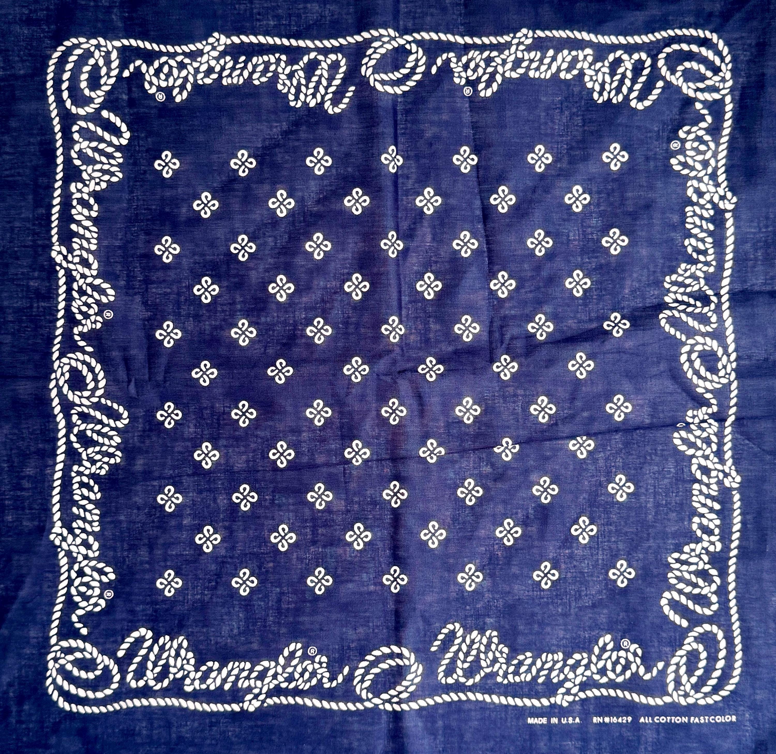 Old stock vintage 80s Wrangler Fast Color Western bandana featuring the iconic rope logo design