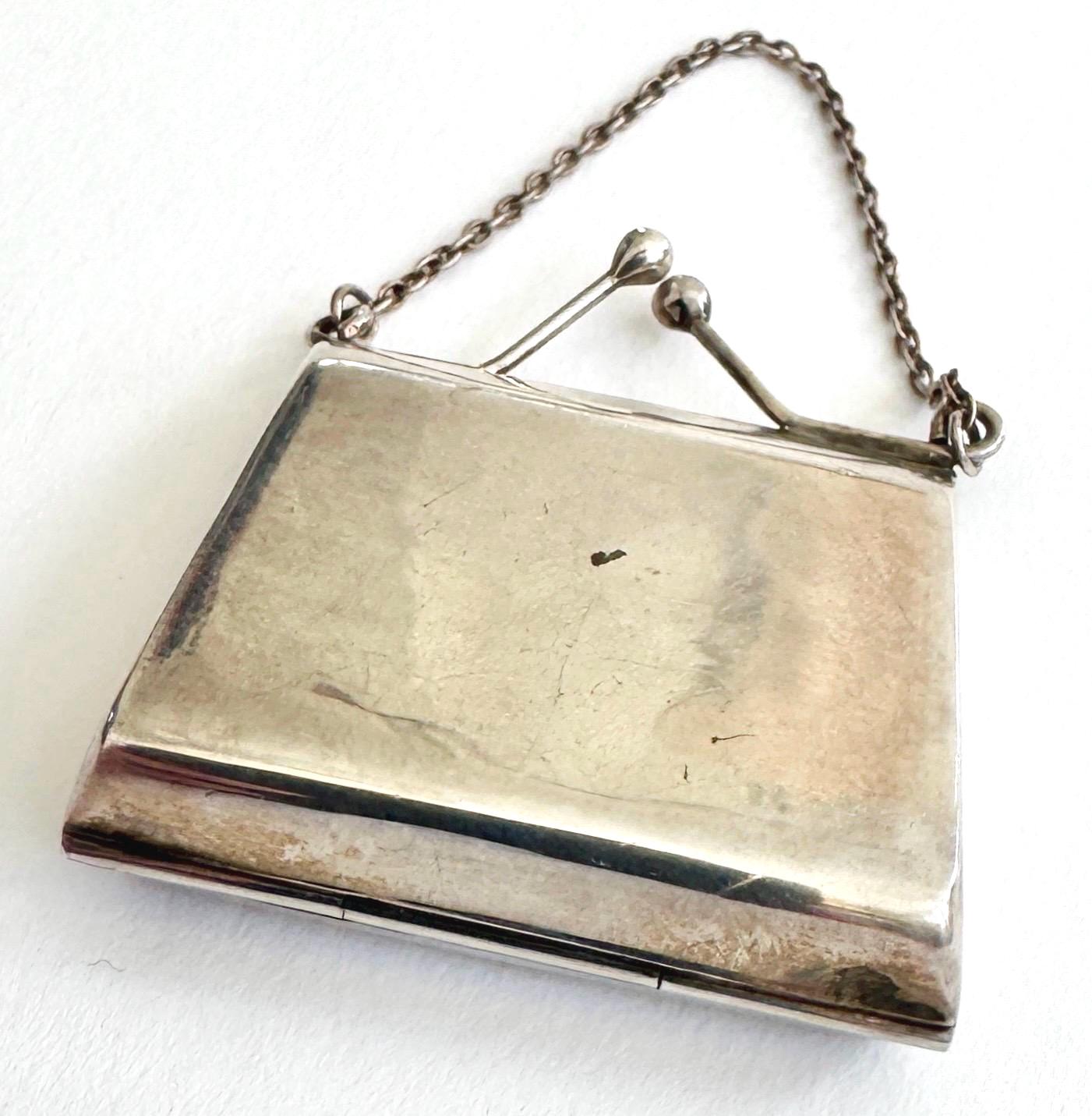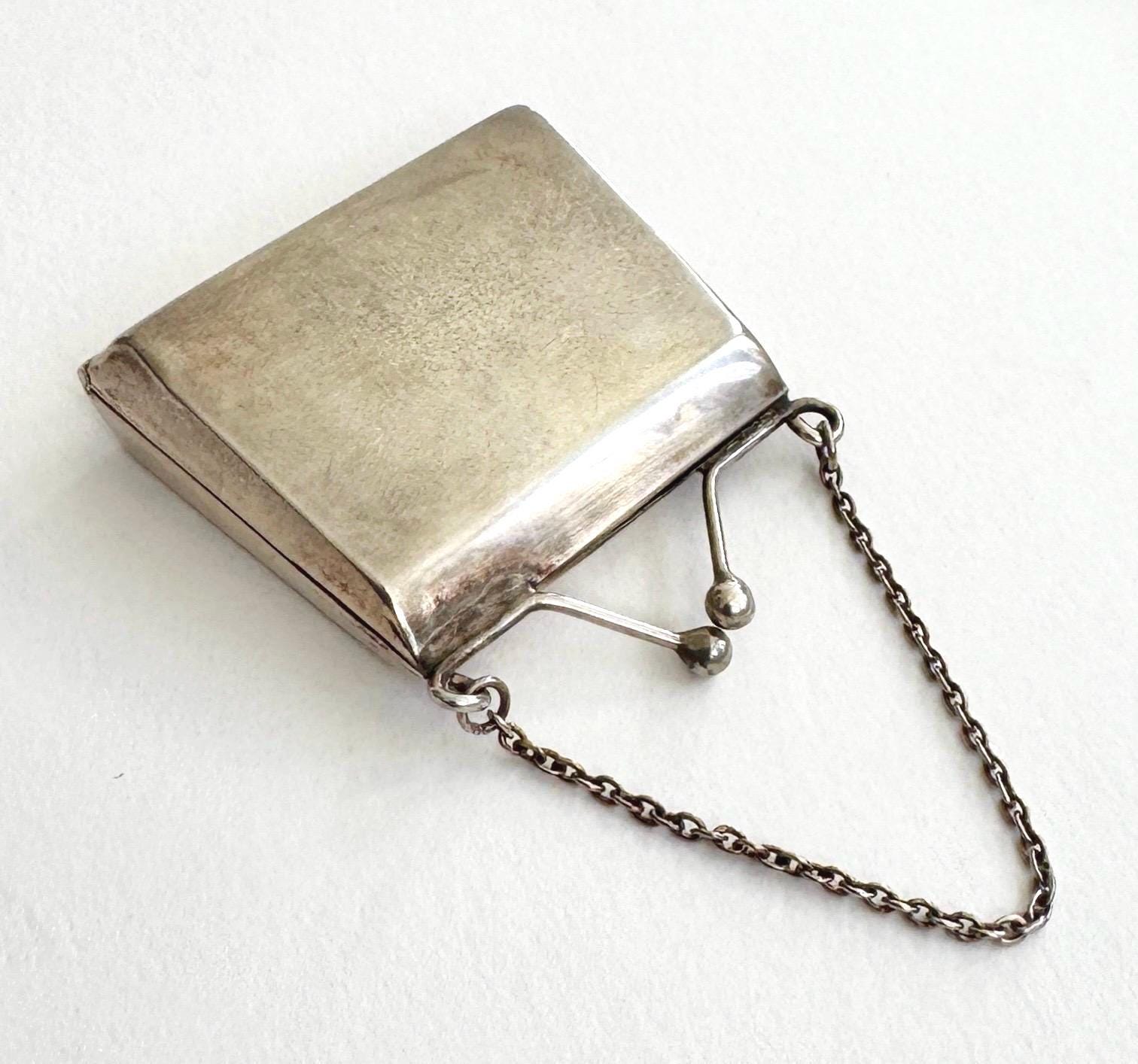 Sweet little vintage solid sterling silver miniature purse box with tiny chain strap and delicate kiss lock closure