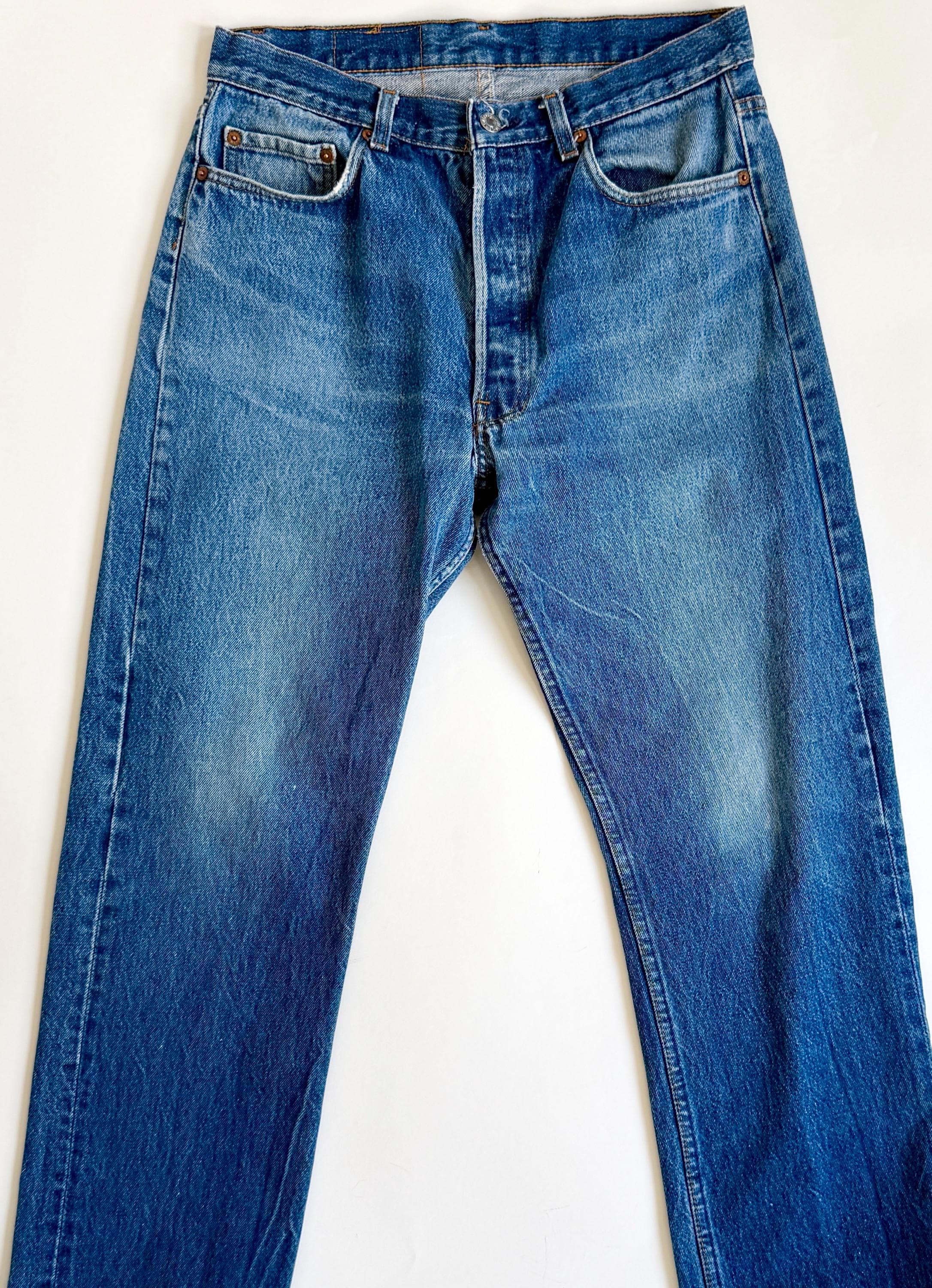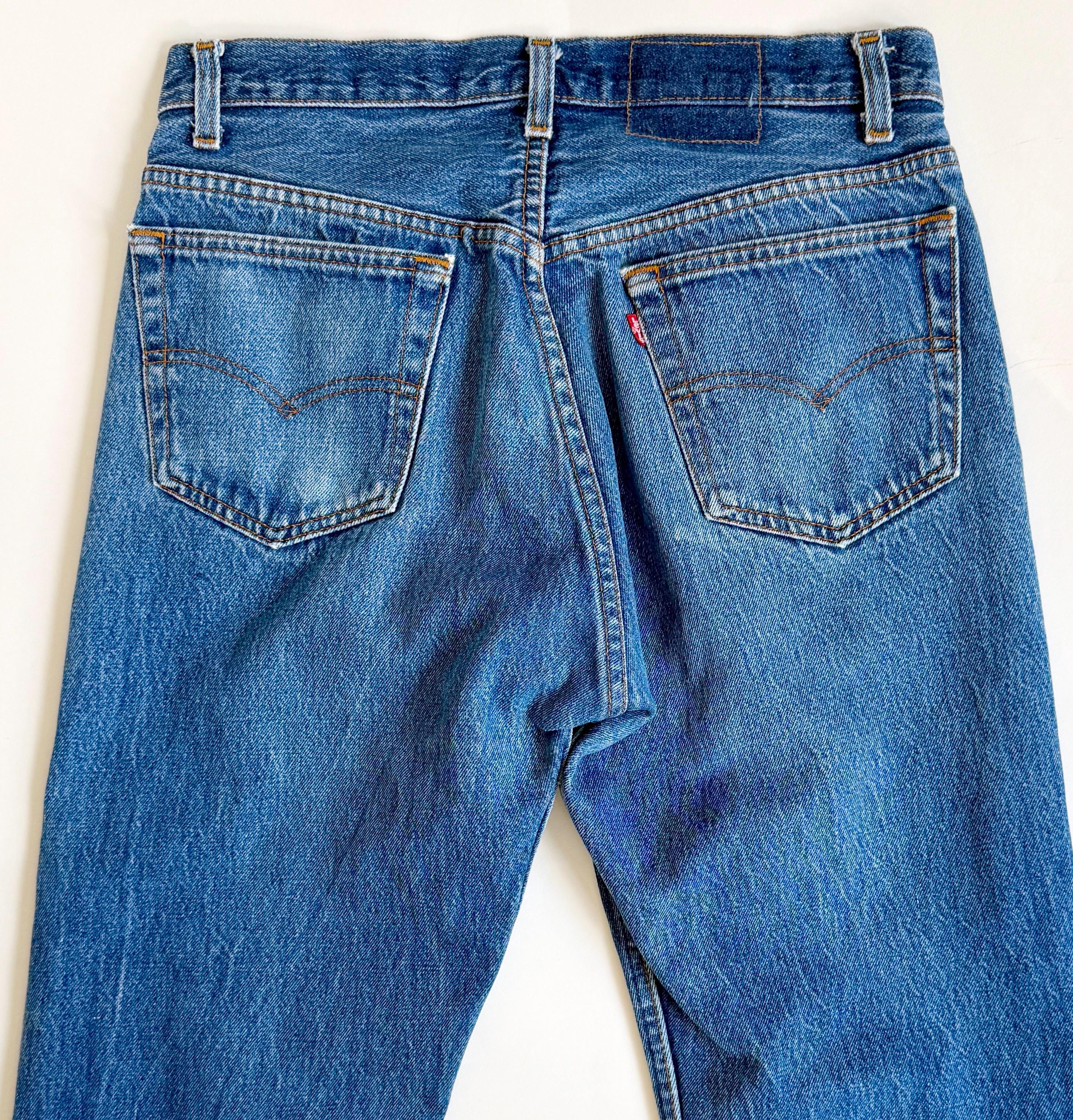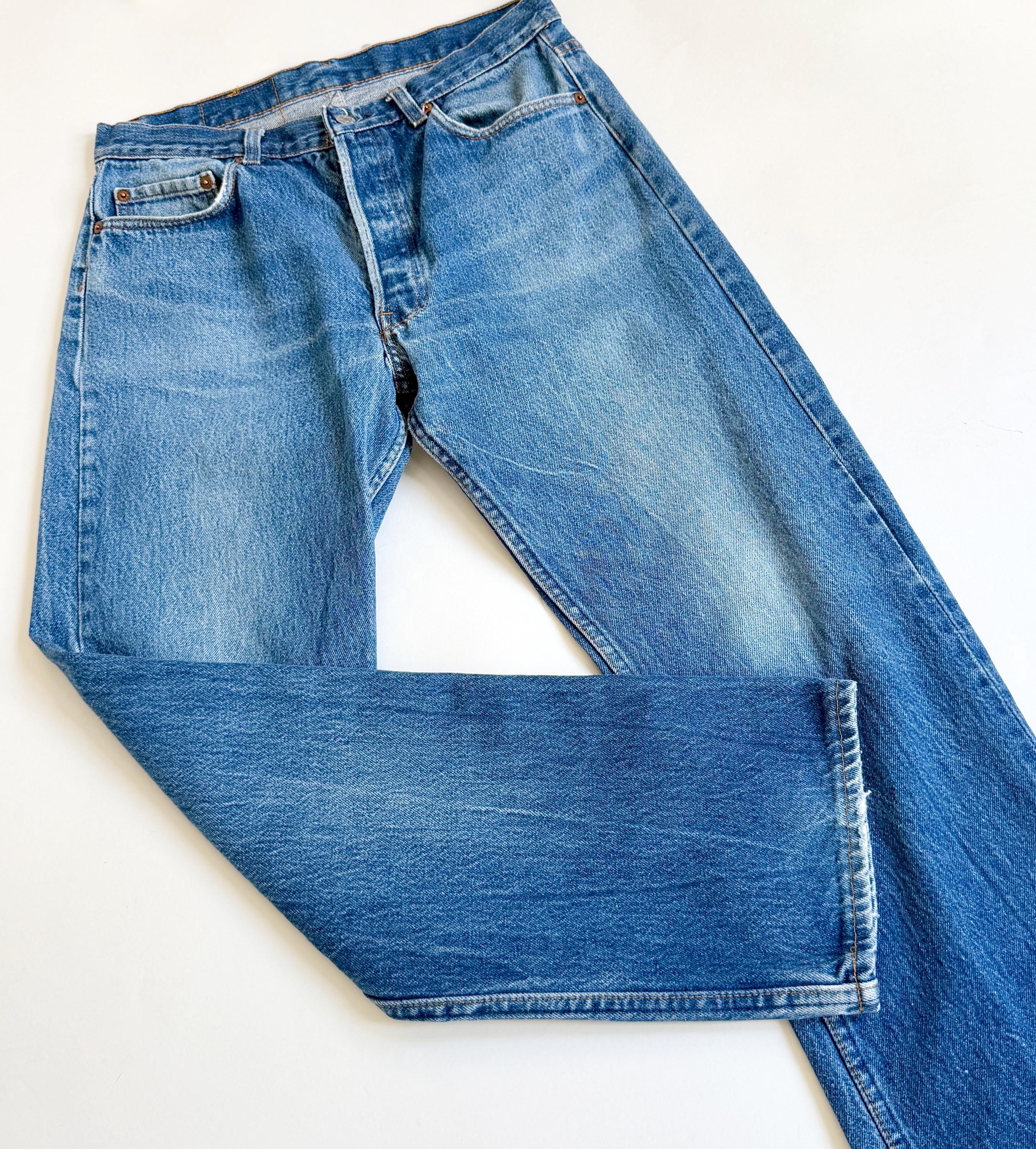 *** PLEASE NOTE: Vintage denim tends to be stiffer & thicker than modern styles and typically has no "give" since spandex/lycra/elastane was rarely used pre-90's. Please take that into consideration when determining if the measurements will work for your frame. Just because you wear a modern size 26, doesn't mean that a vintage 26 waist is always the most comfortable fit if you want to breathe! Many say to order a size or two up but I'll leave that to you to decide ***