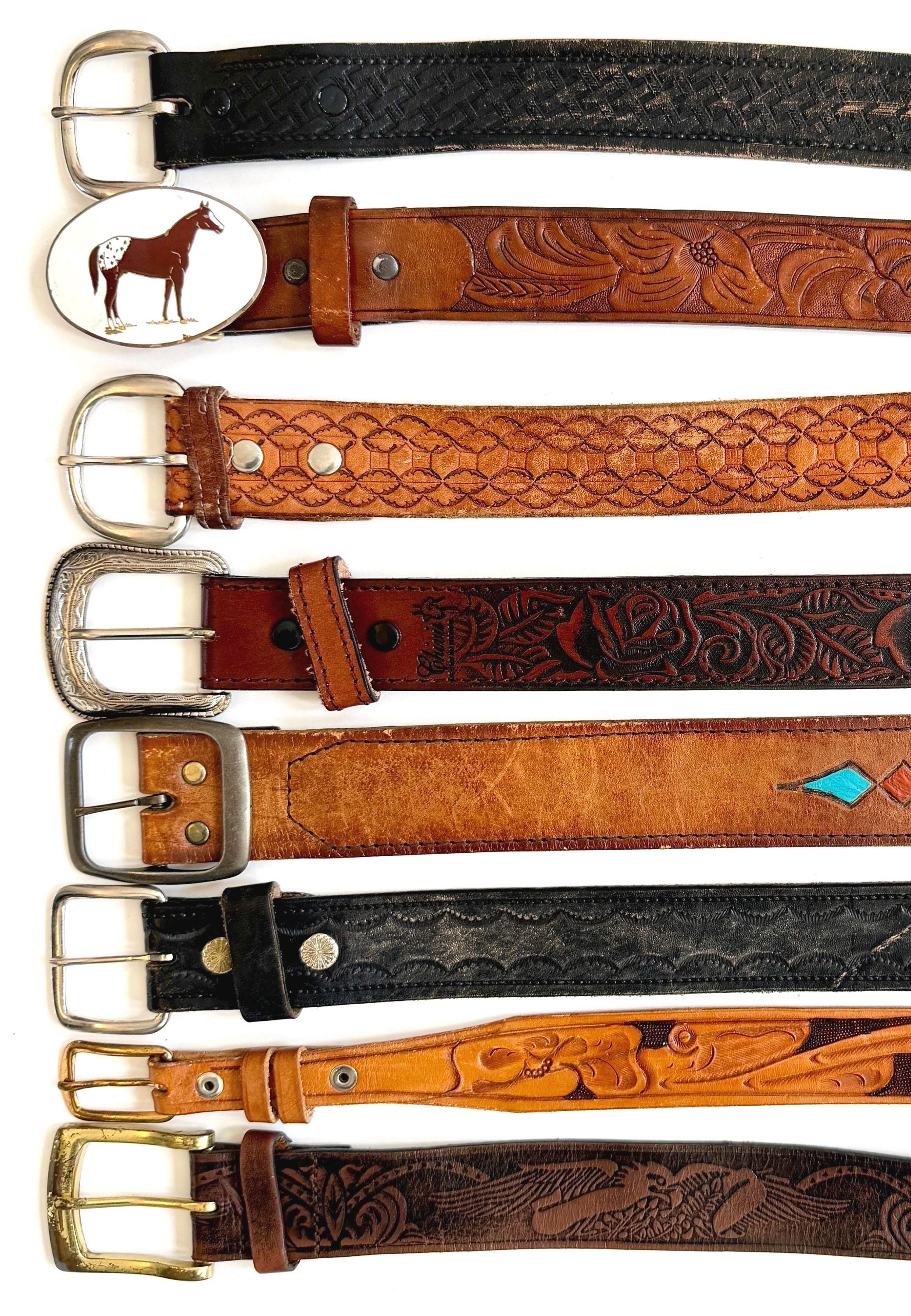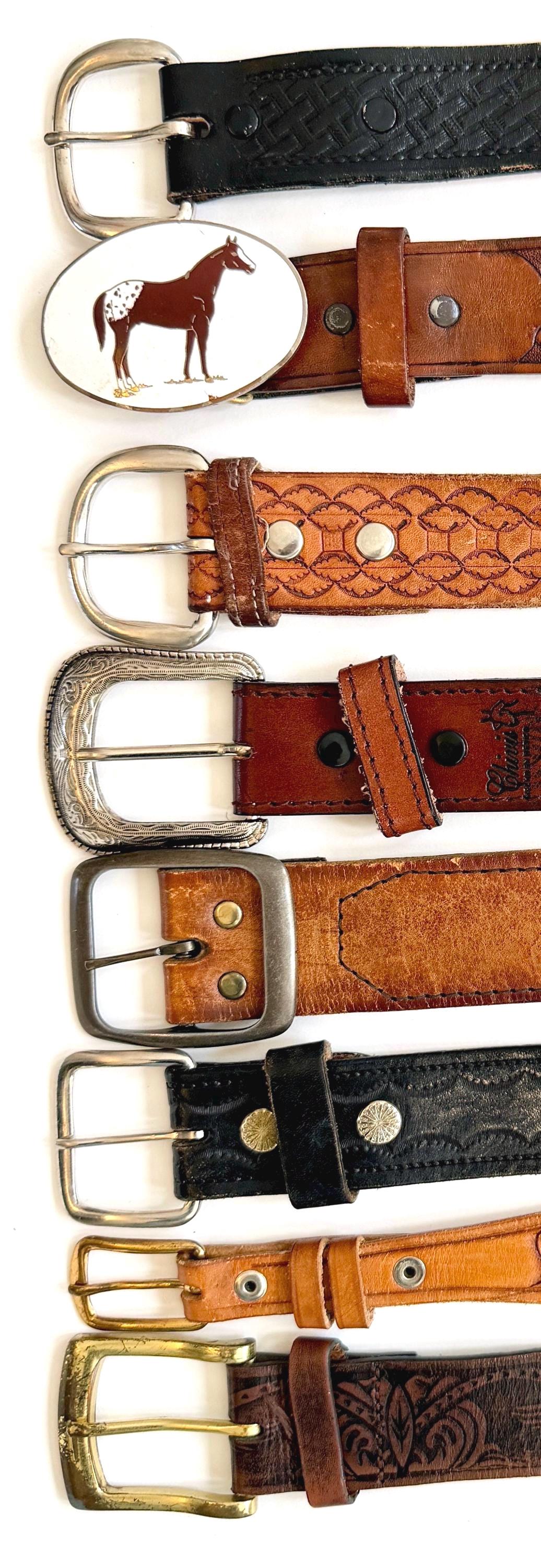 Belts are in pre-owned vintage condition with age-related wear including distressing, discoloration, wear to belt holes, minor bends in the strap, etc. If you have a question about a specific strap, please don't hesitate to message us!