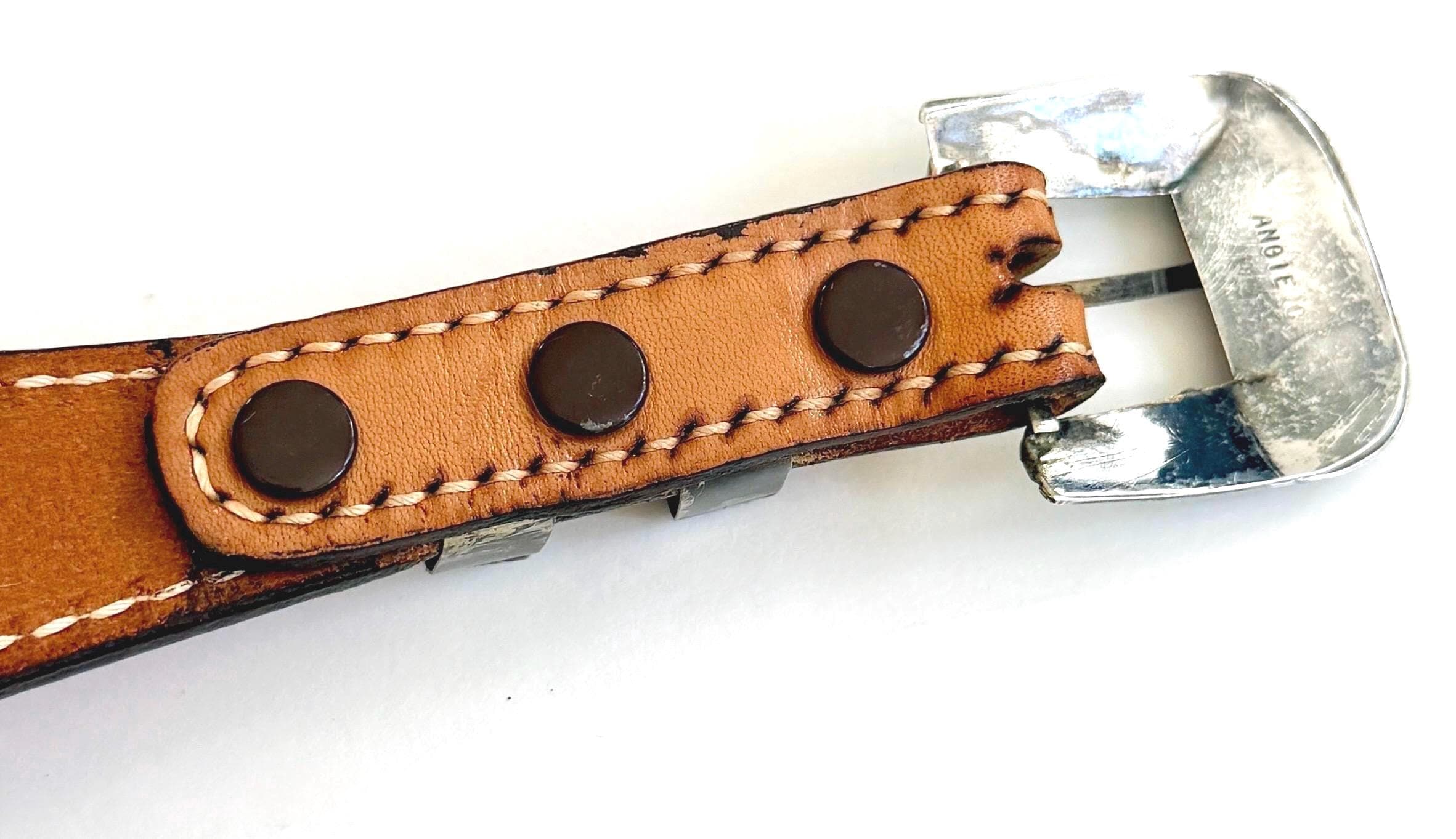 Belt and buckle in good vintage condition with minor patina, distressing and wear. Please note the largest hole appears "home" punched