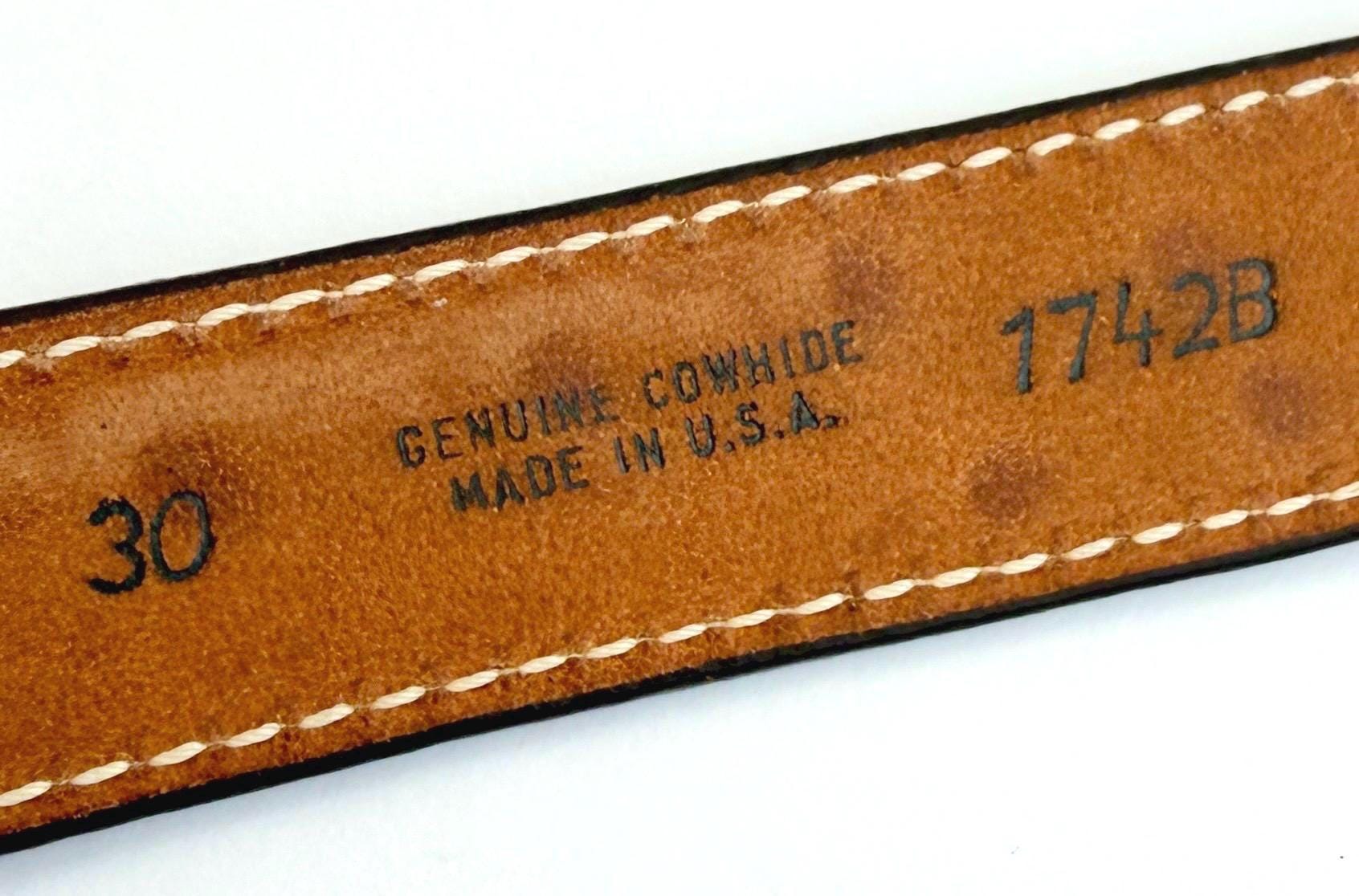 Genuine cowhide strap made in USA by TexTan and marked size 30