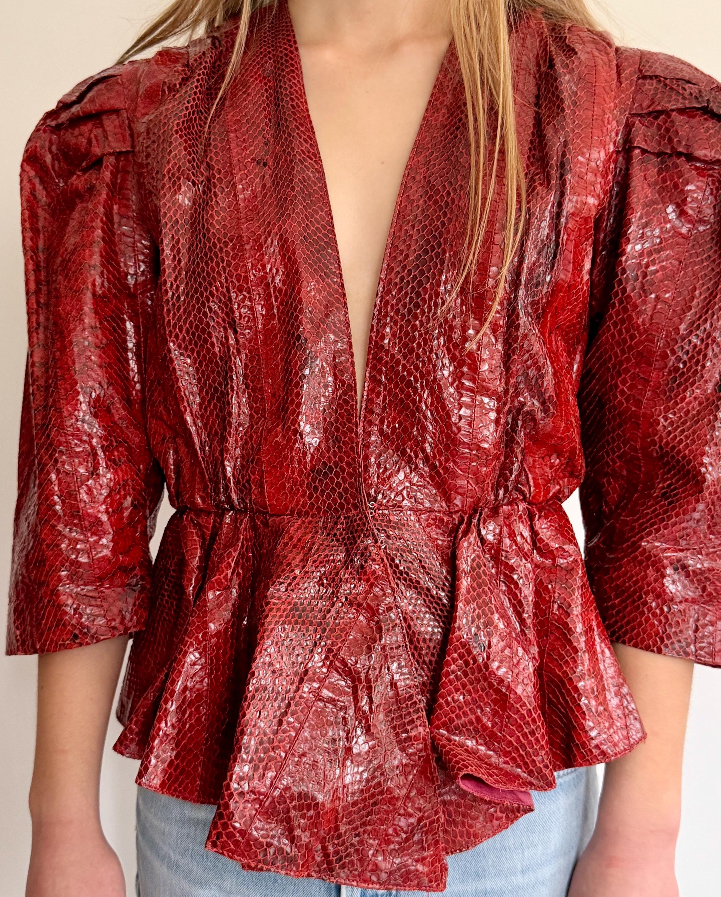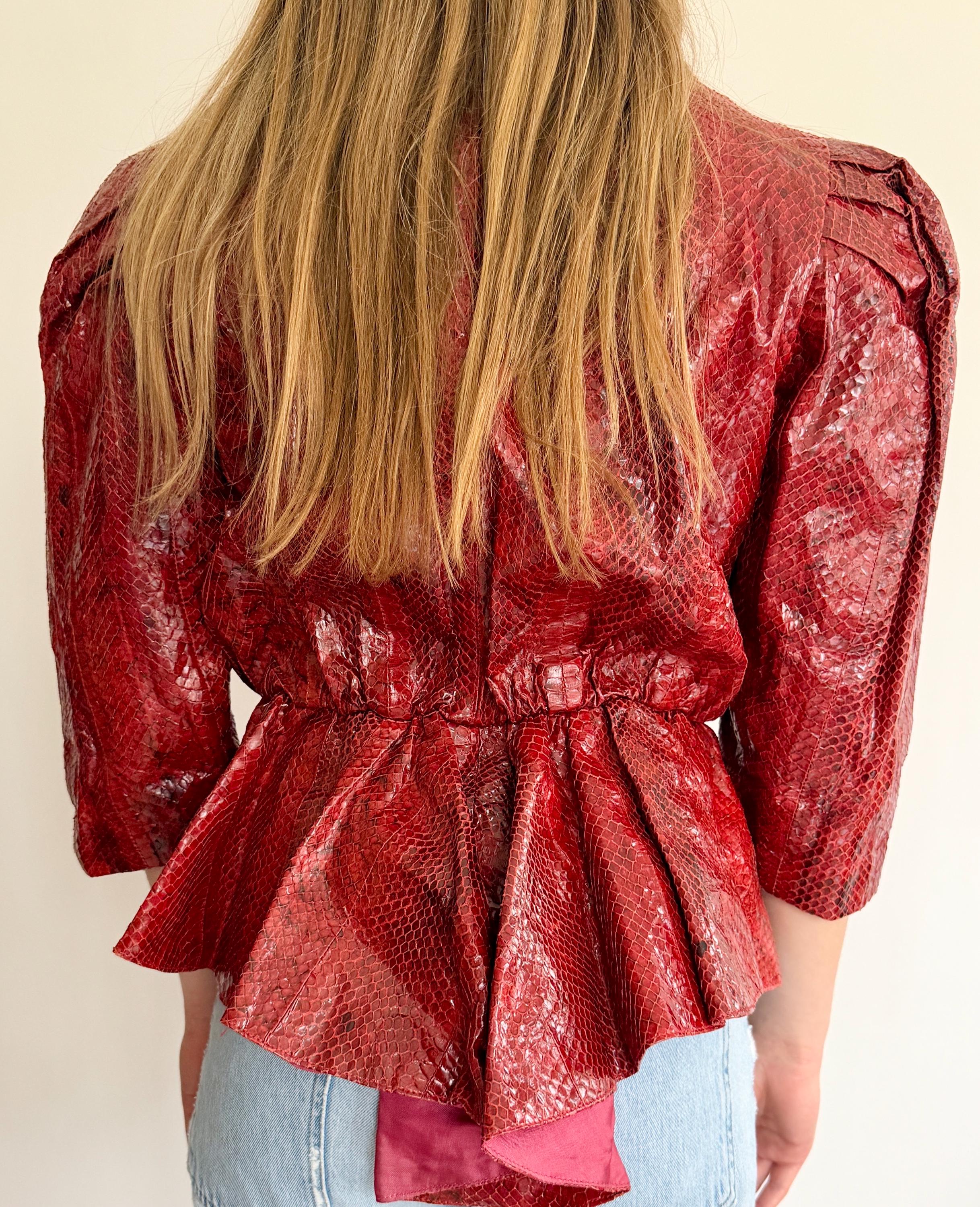 Fab vintage 80's snakeskin jacket with puff sleeves and peplum style waist