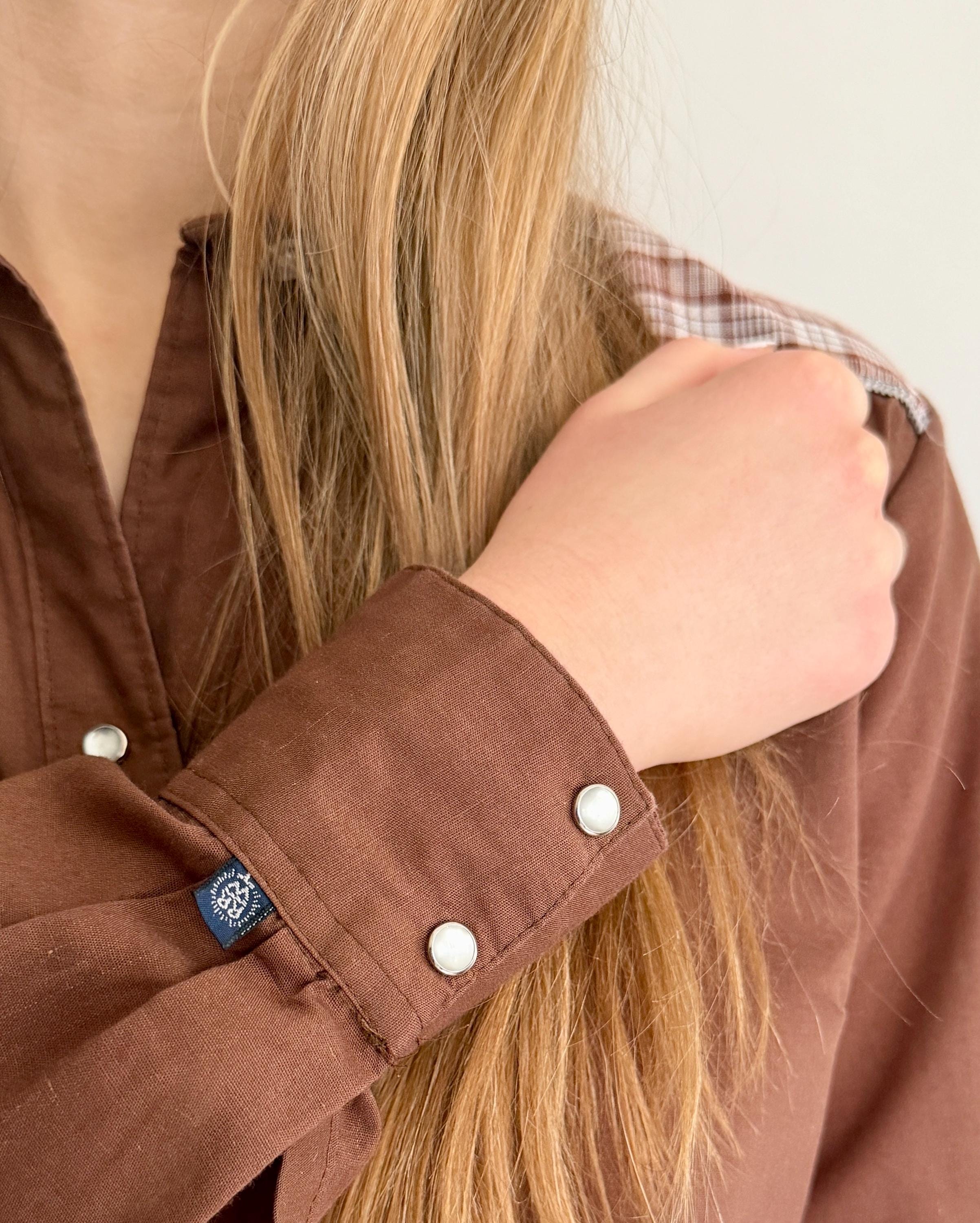 Likely originally intended as a men's shirt but, ladies, this could work equally well for you. Not marked with a size and photographed on a size XS model with plenty of room to spare. Please use measurements to ensure a proper fit.