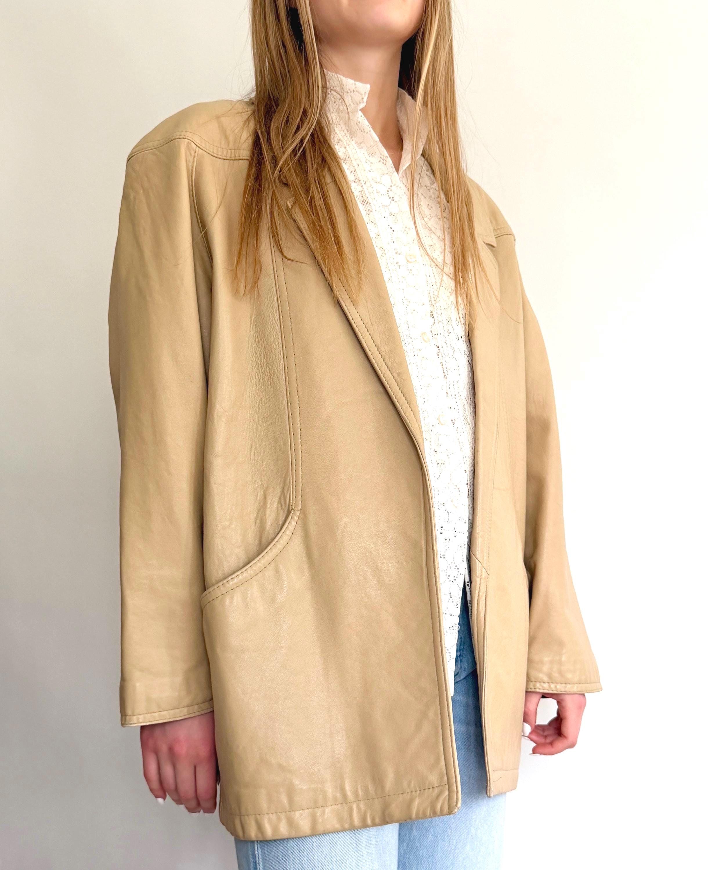 Soft vintage 80's beige suede jacket with an easy drop shoulder fit