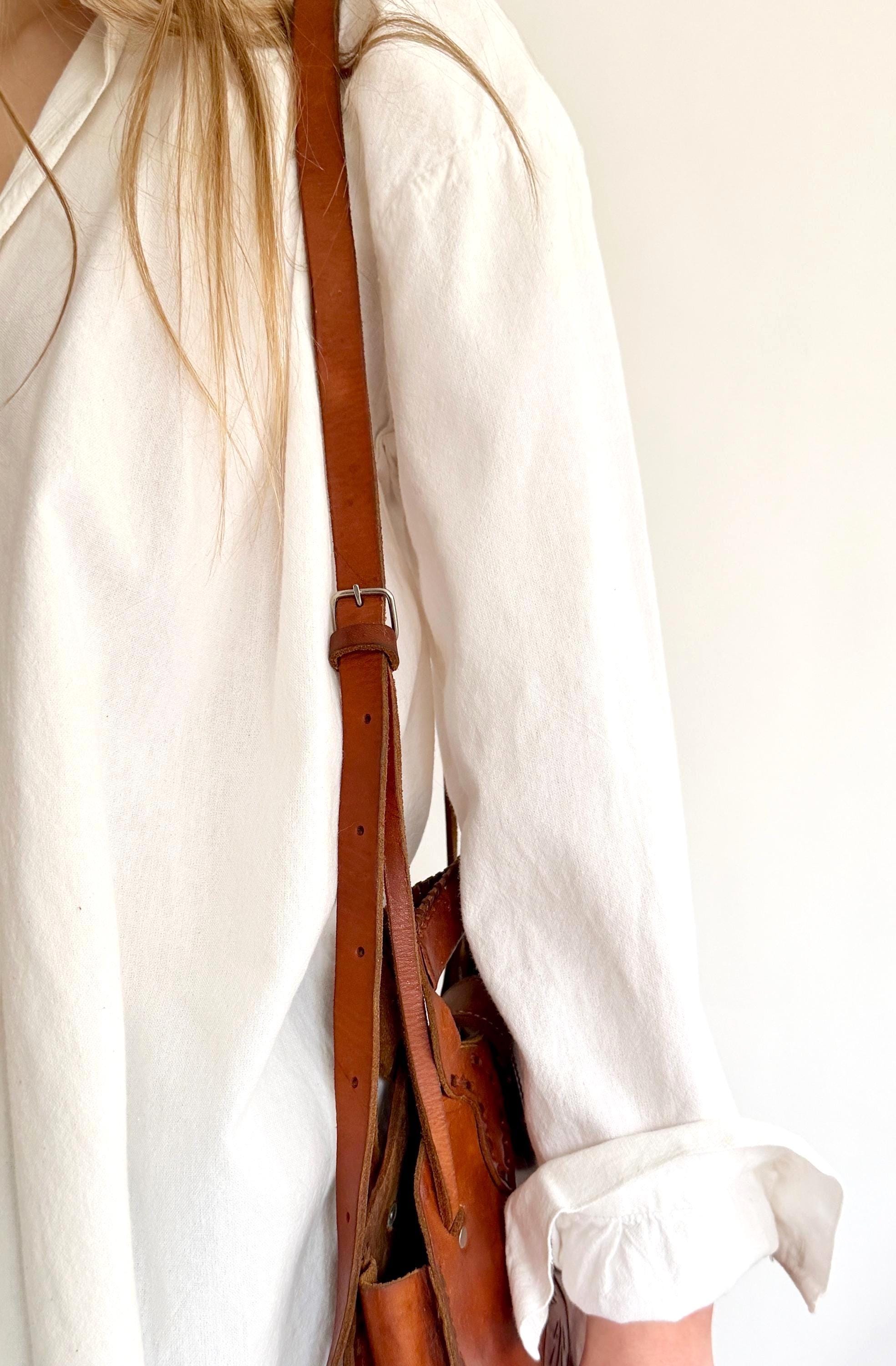 Strap adjusts from about 36" to 46" and photographed on the shortest setting.