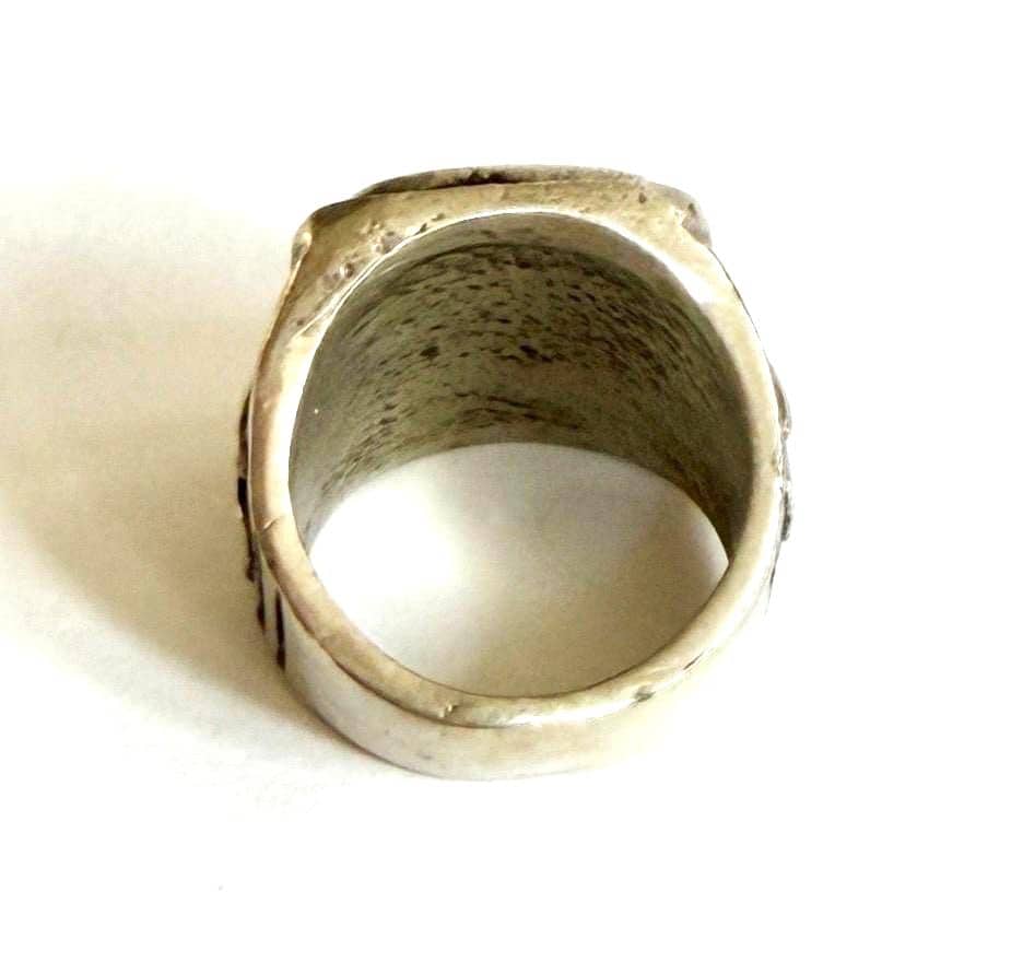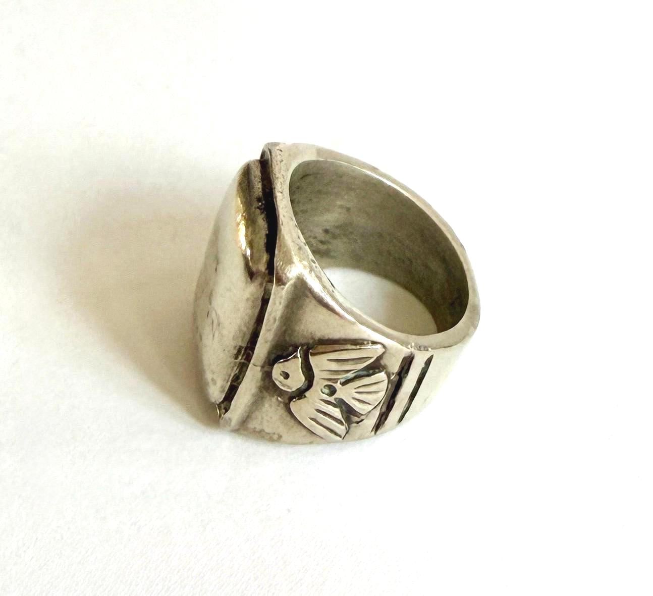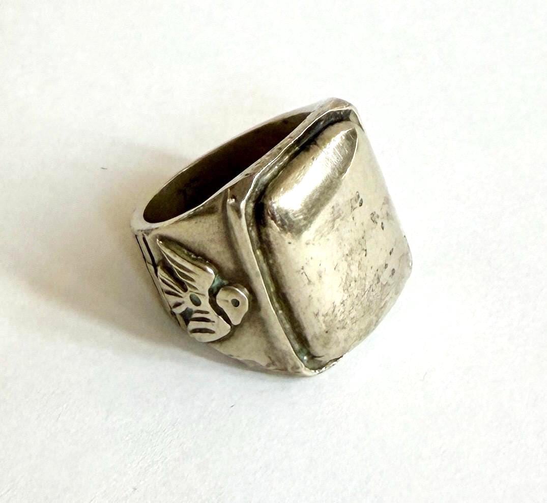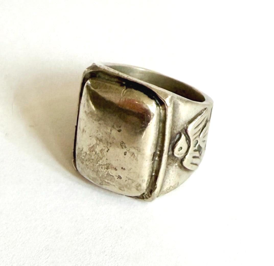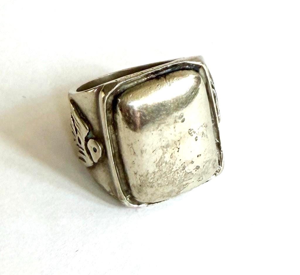 Hefty vintage solid sterling silver thunderbird signet ring