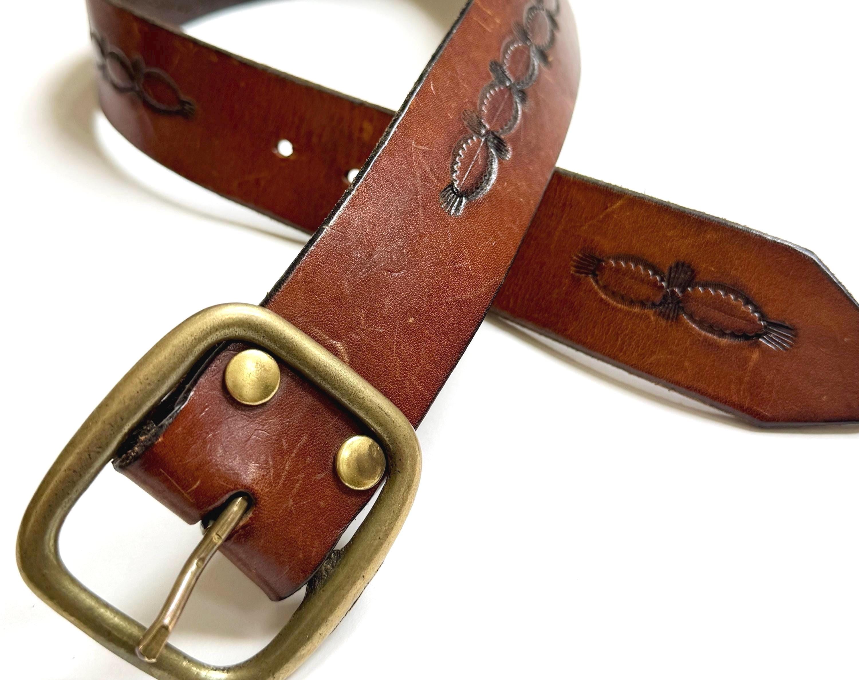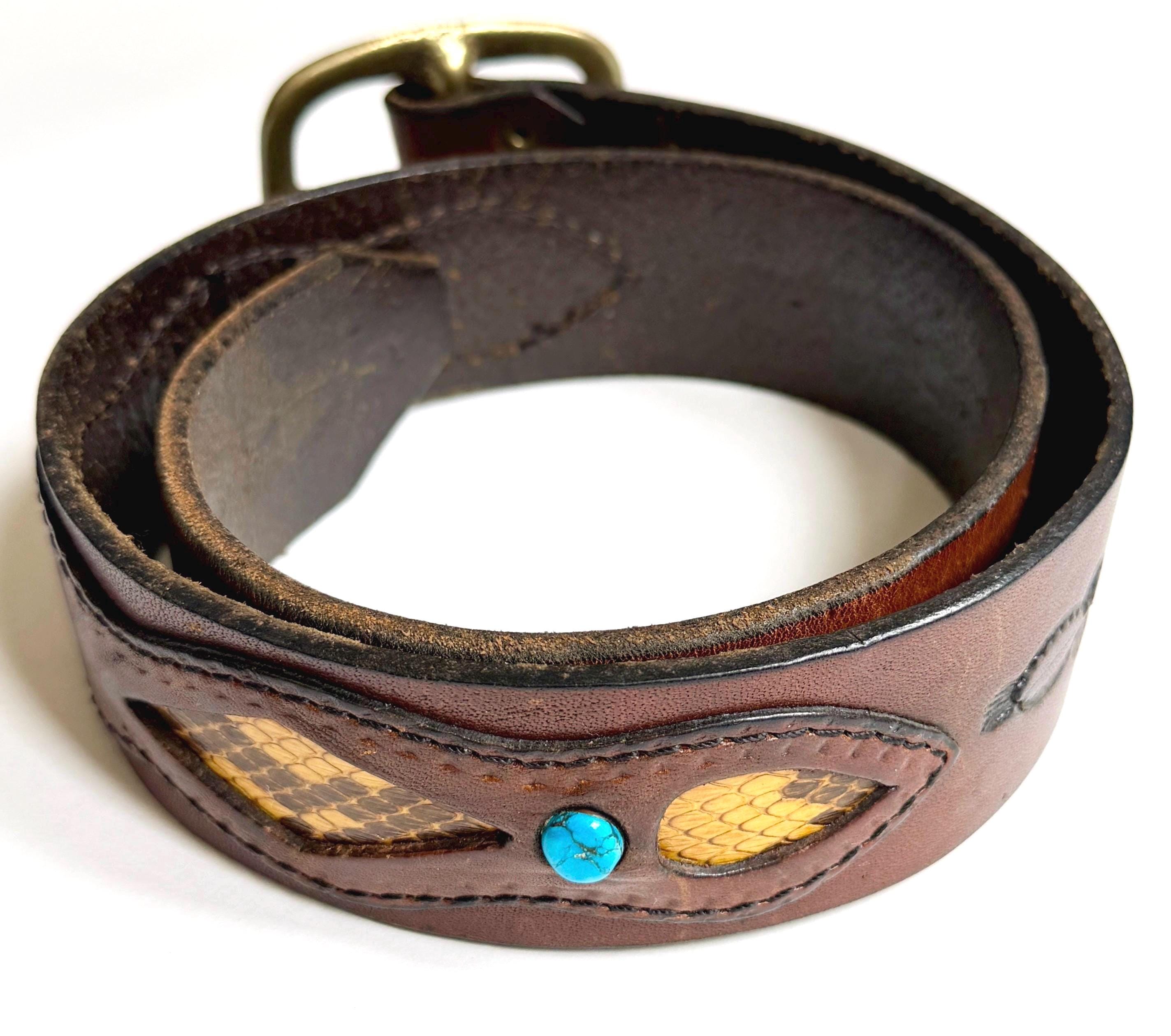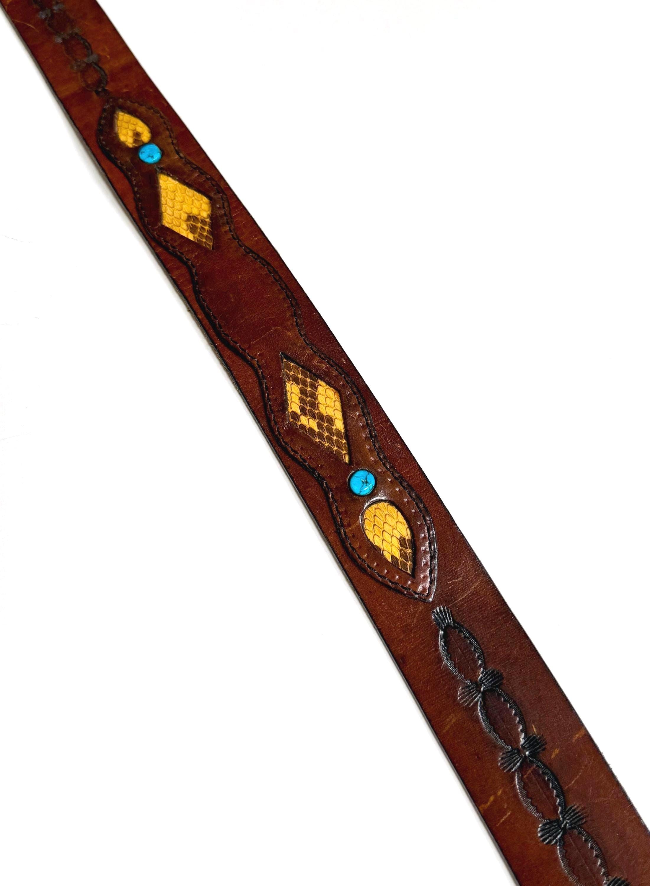 Handsome vintage Western belt with leather appliqué inset with Python snakeskin and turquoise stone details
