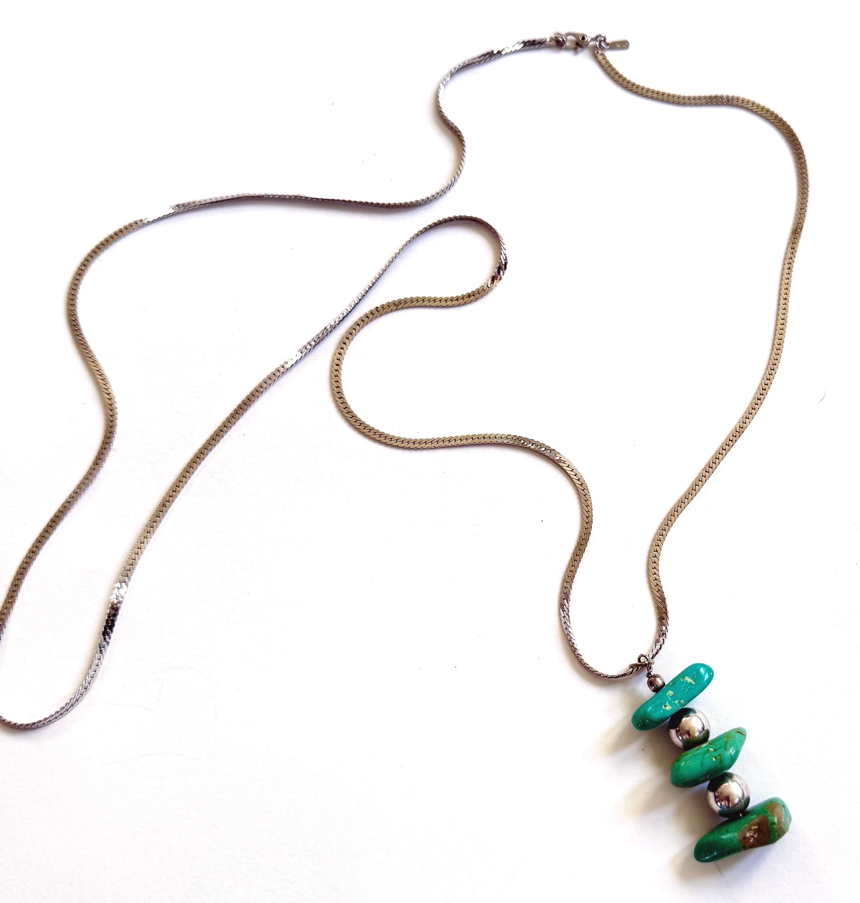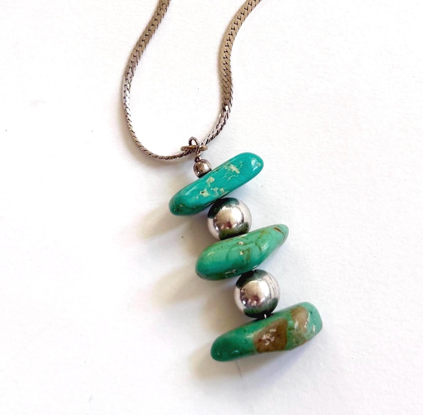 Vintage turquoise nugget pendant strung on an 80's Monet silver chain necklace