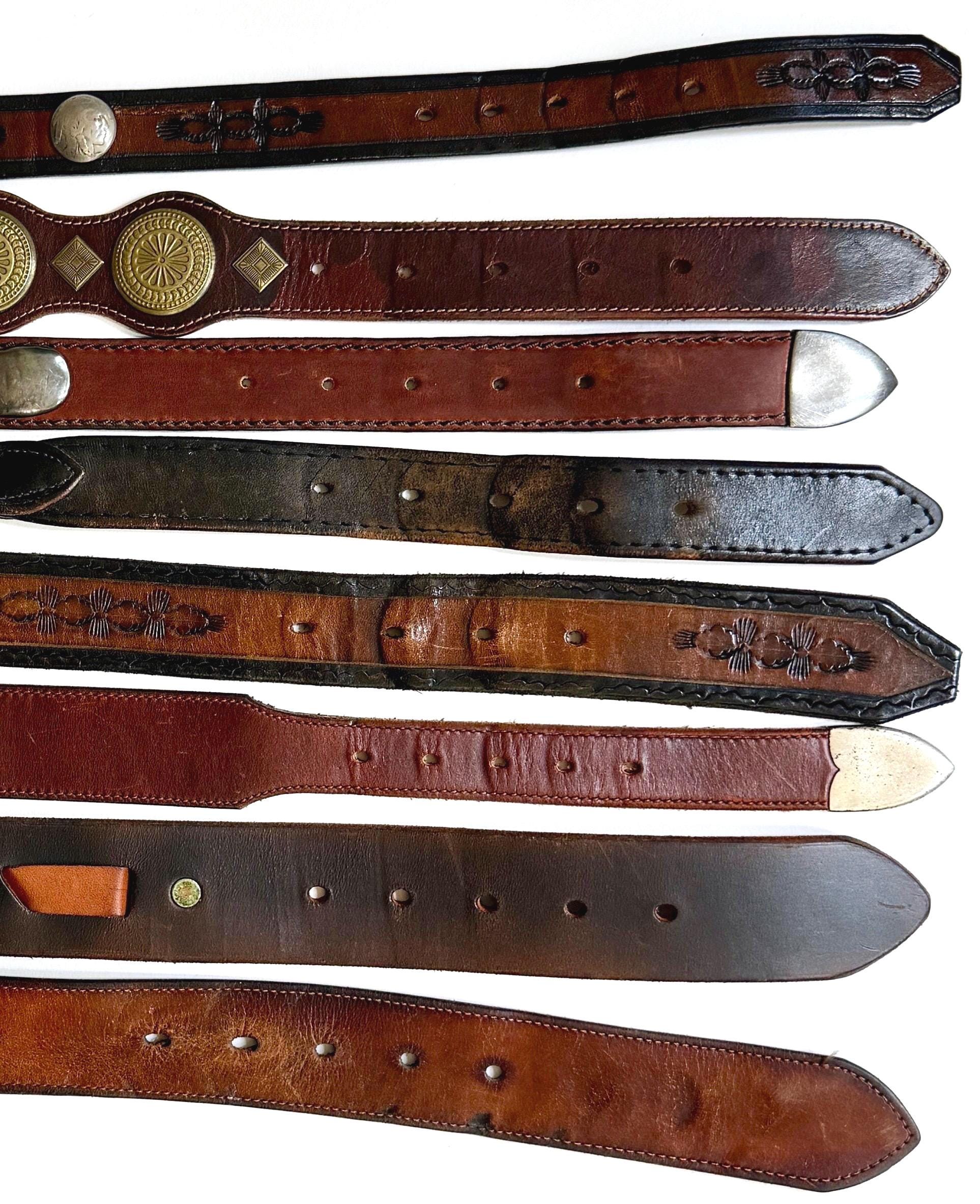 Belts are in pre-owned vintage condition with age-related wear including distressing, discoloration, wear, scratches, etc. If you have a question about a specific style, please don't hesitate to message us!