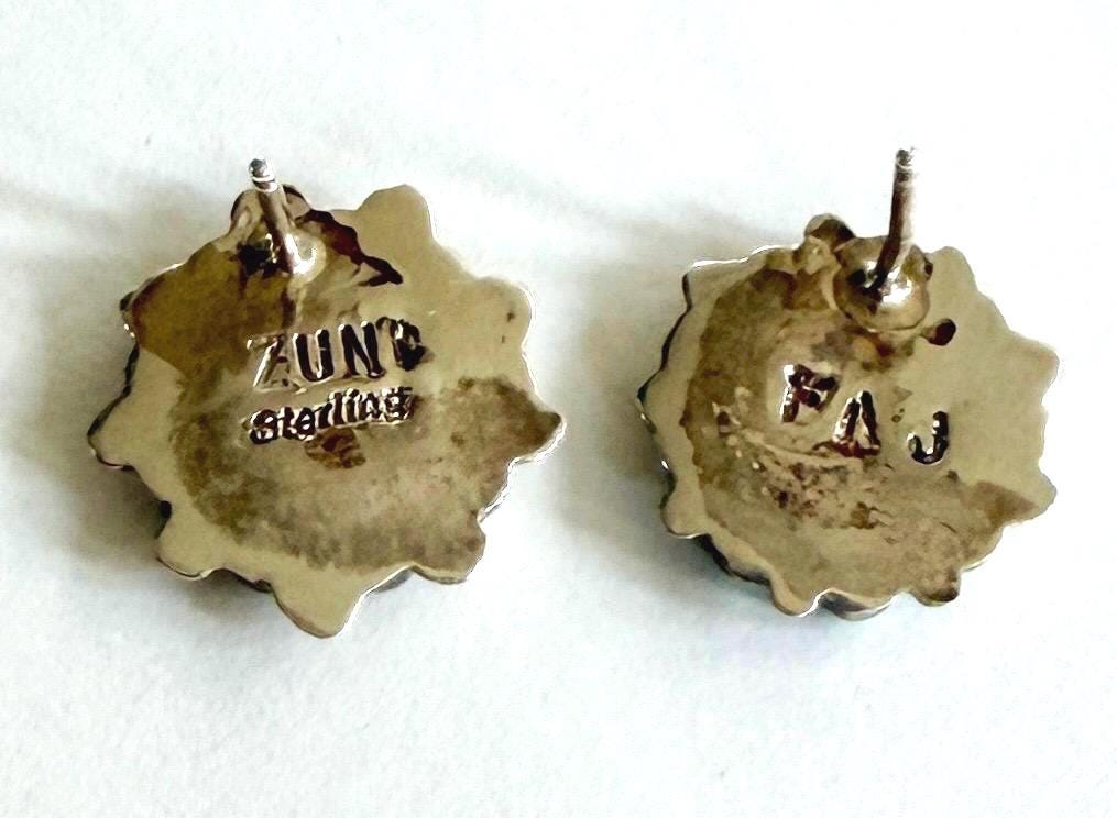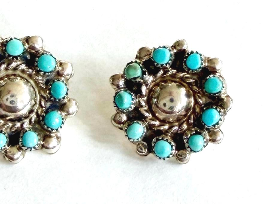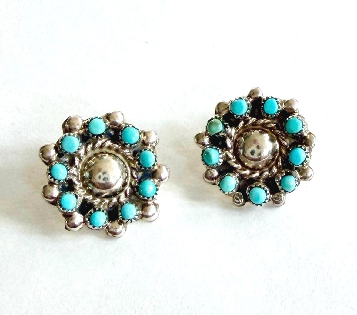 Vintage Native American Zuni handcrafted sterling silver and snake eye set turquoise stud earrings