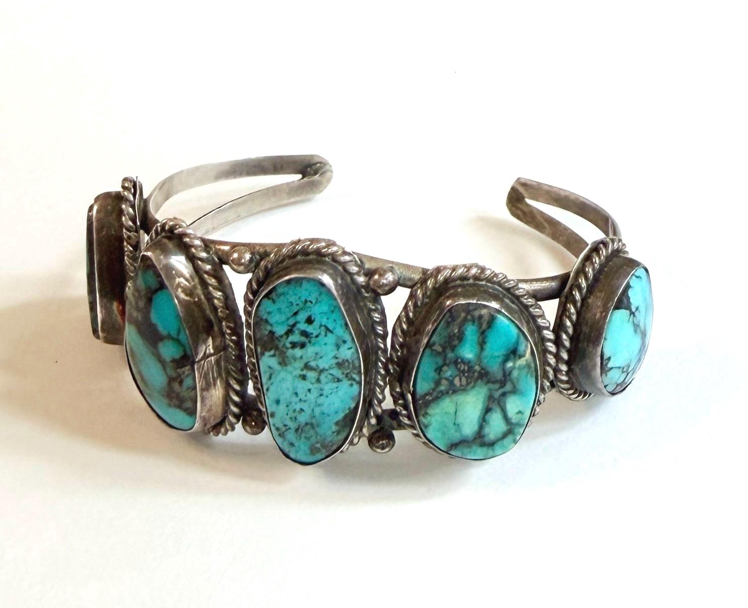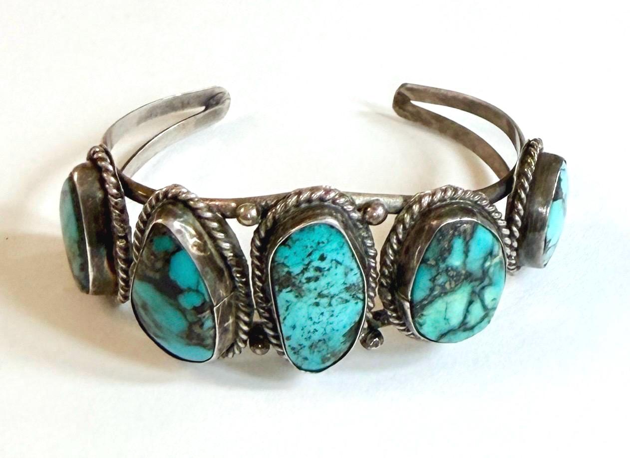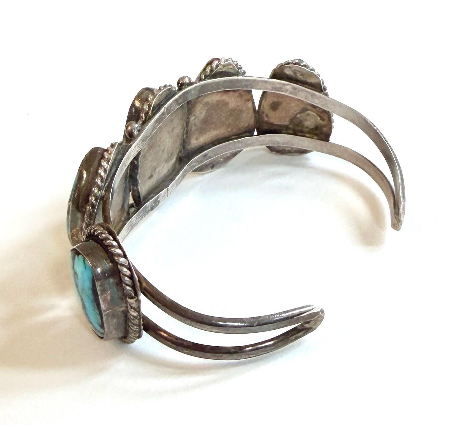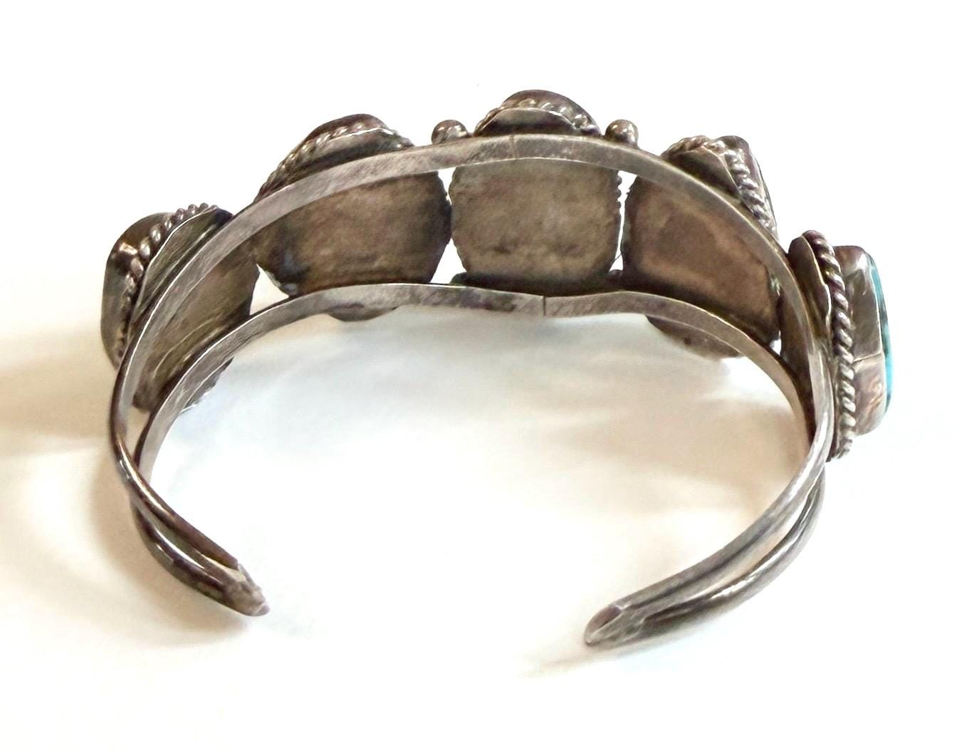 Vintage Native American Navajo sterling silver and five stone turquoise cuff bracelet