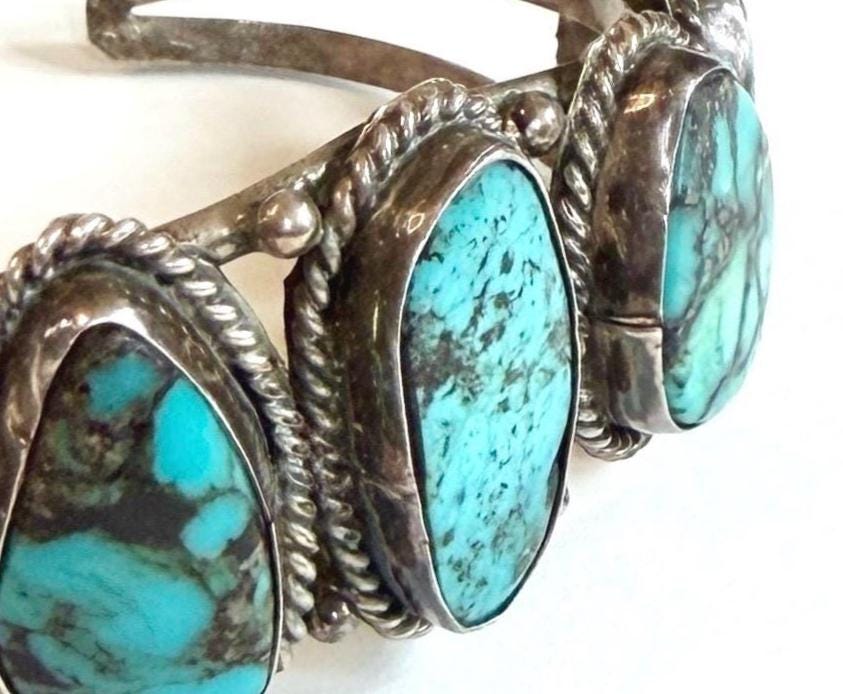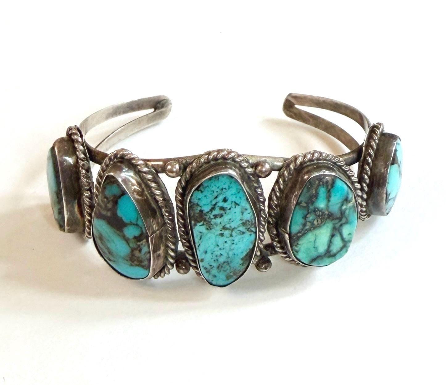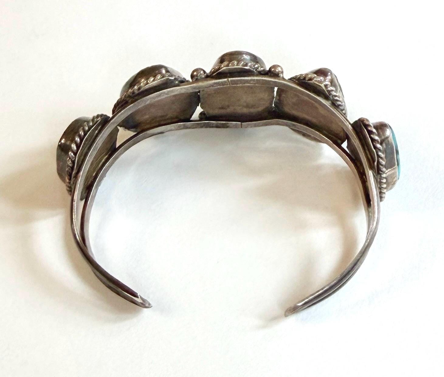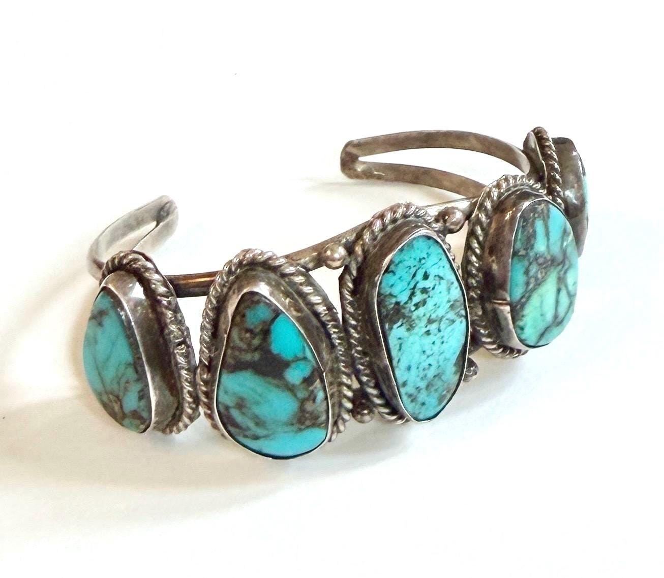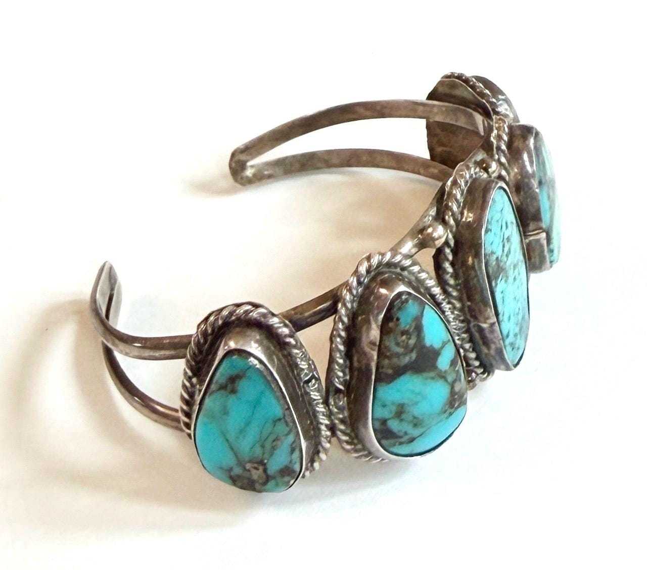Vintage Native American Navajo sterling silver and five stone turquoise cuff bracelet