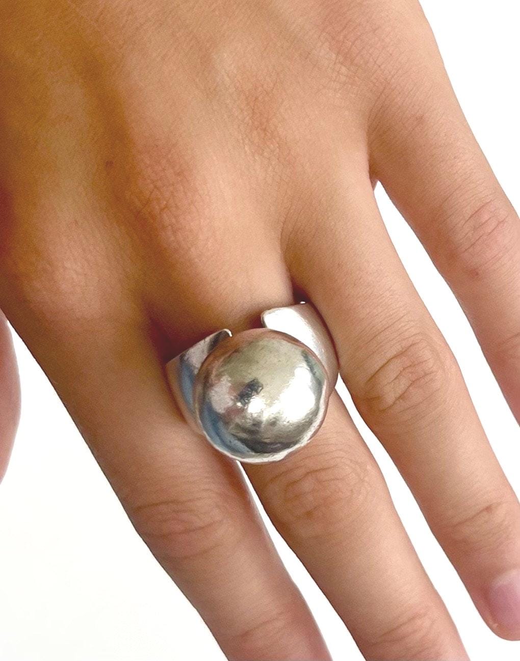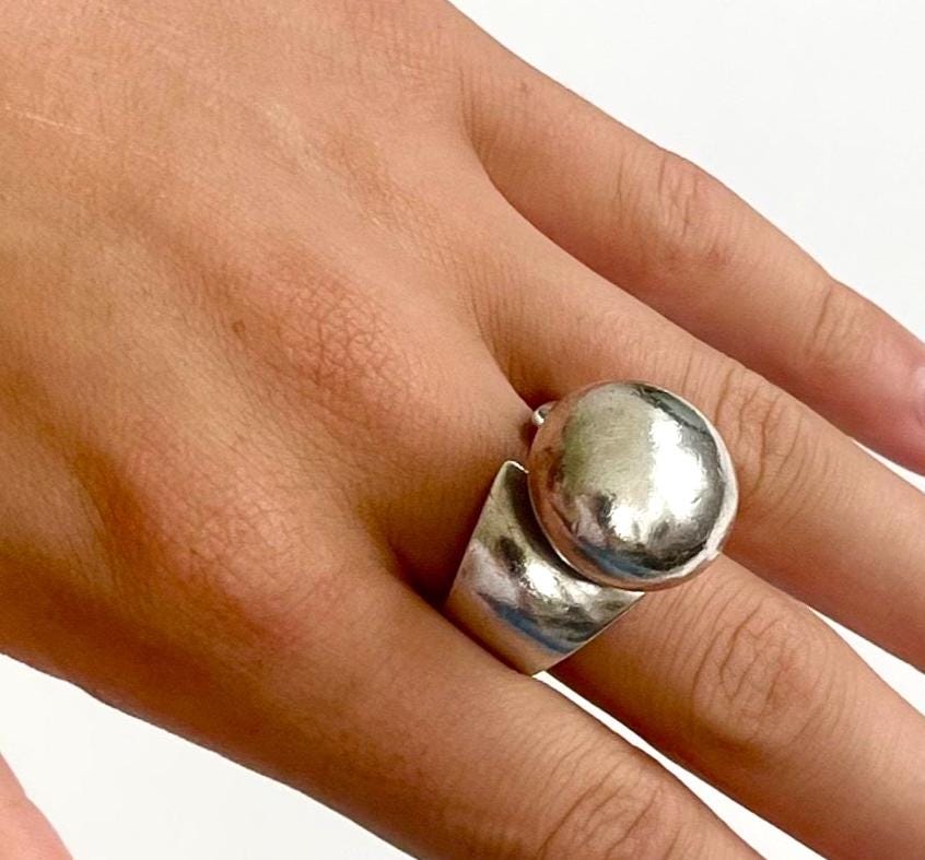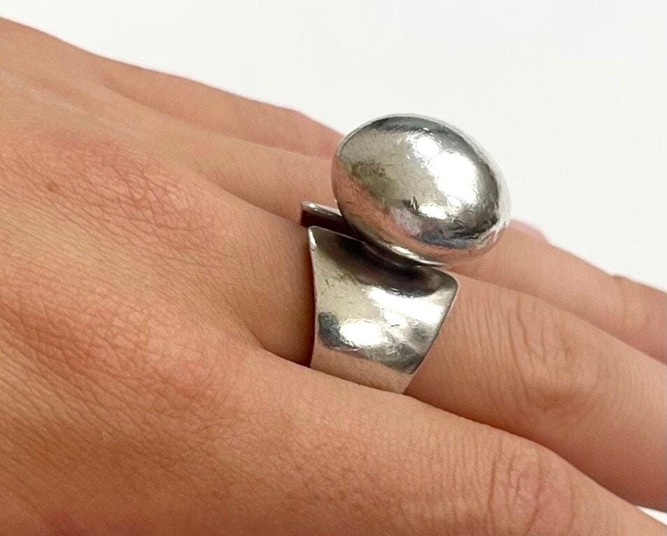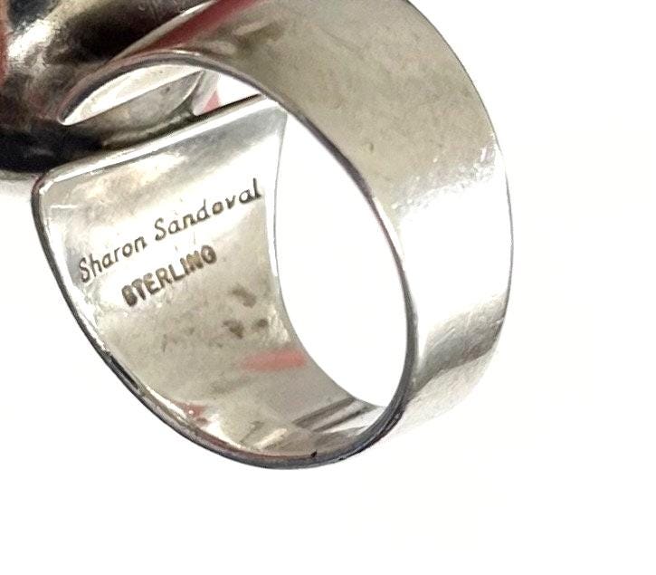 Vintage Native American modernist sculptural sterling silver ring made by Navajo silversmith, Sharon Sandoval