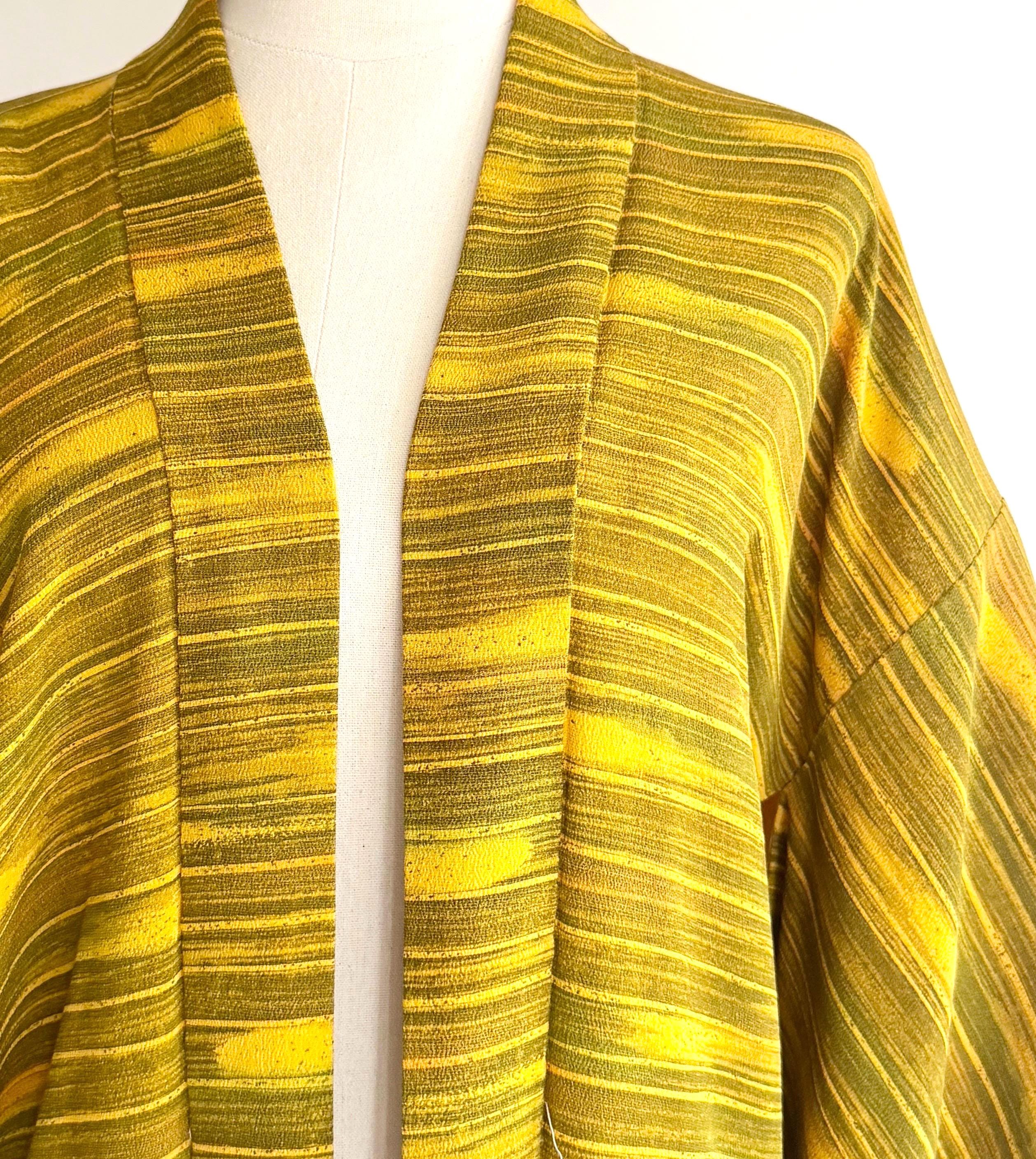 Luxurious handmade Japanese silk kimono in a shorter, more wearable length