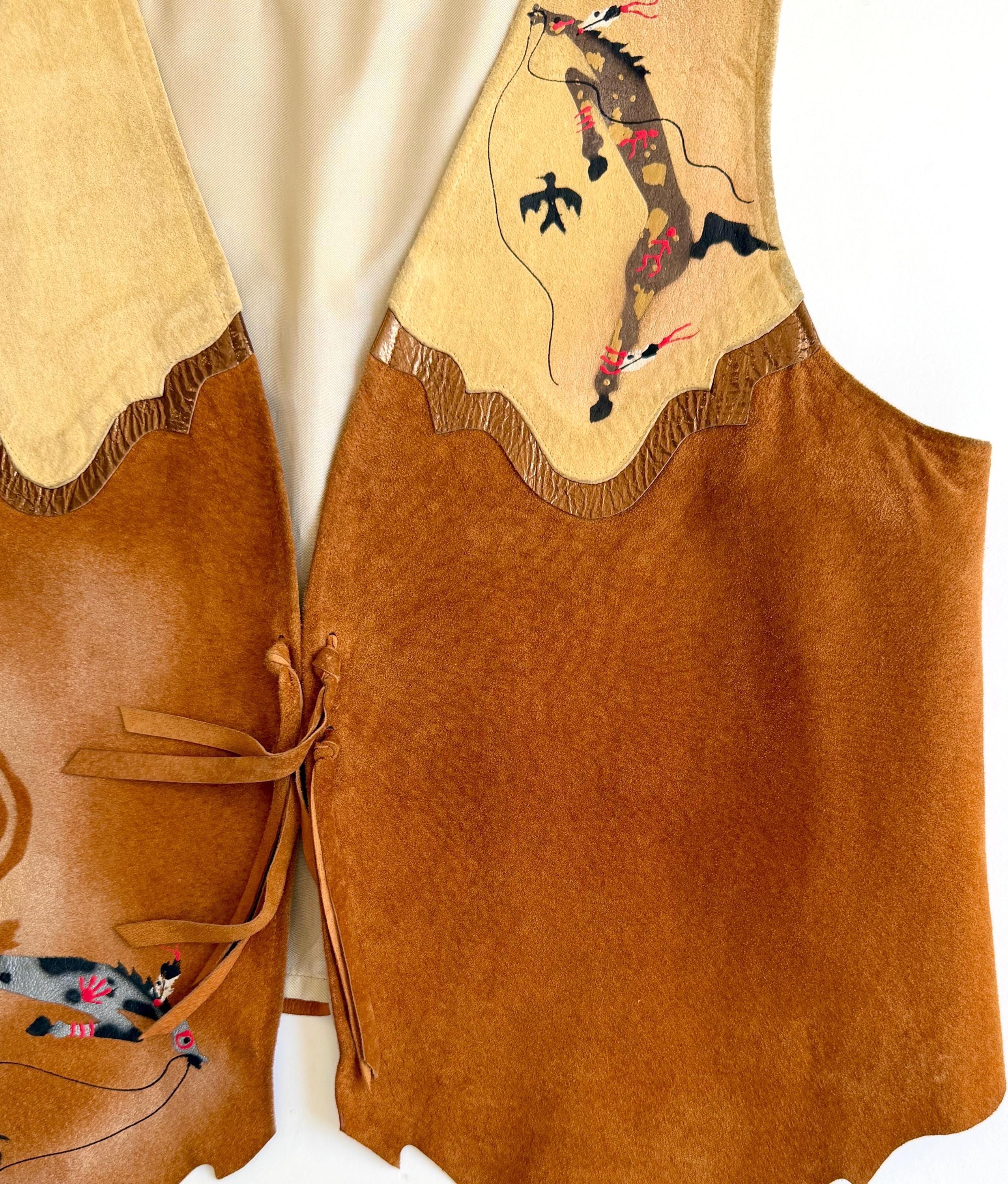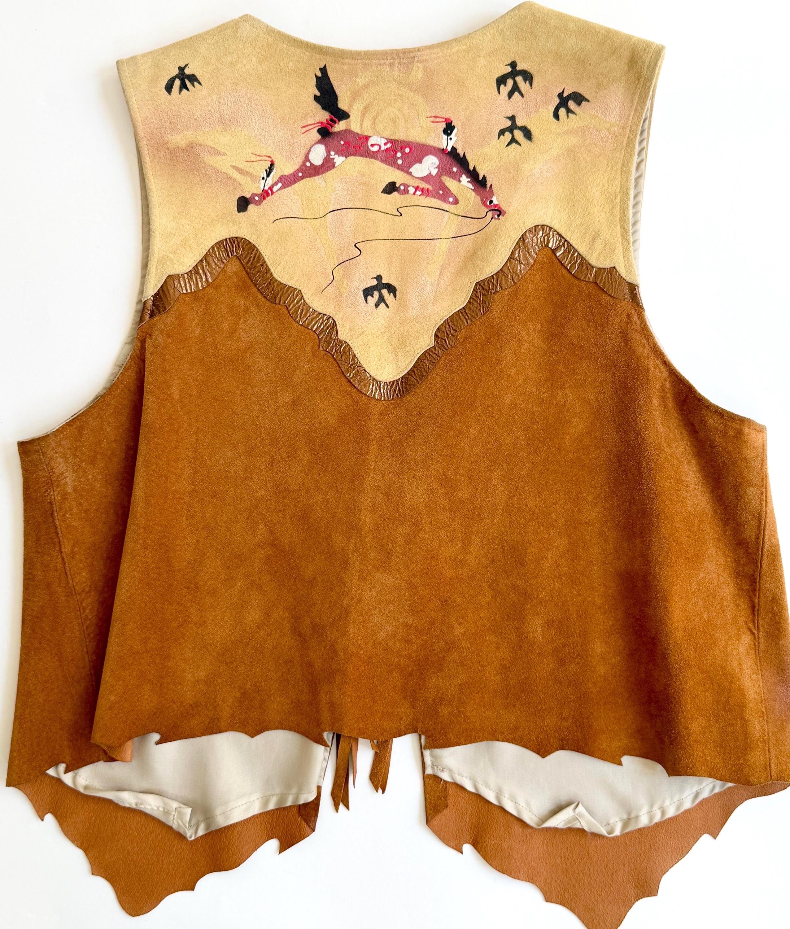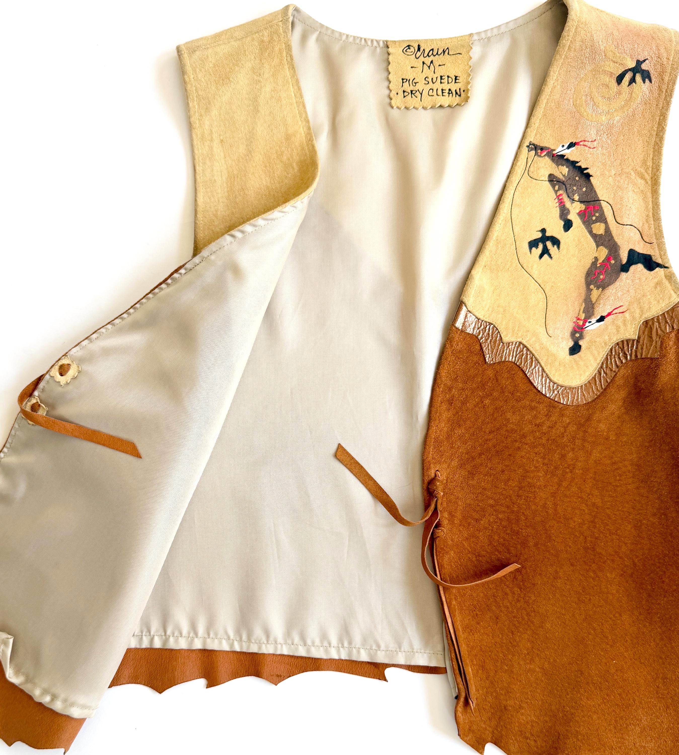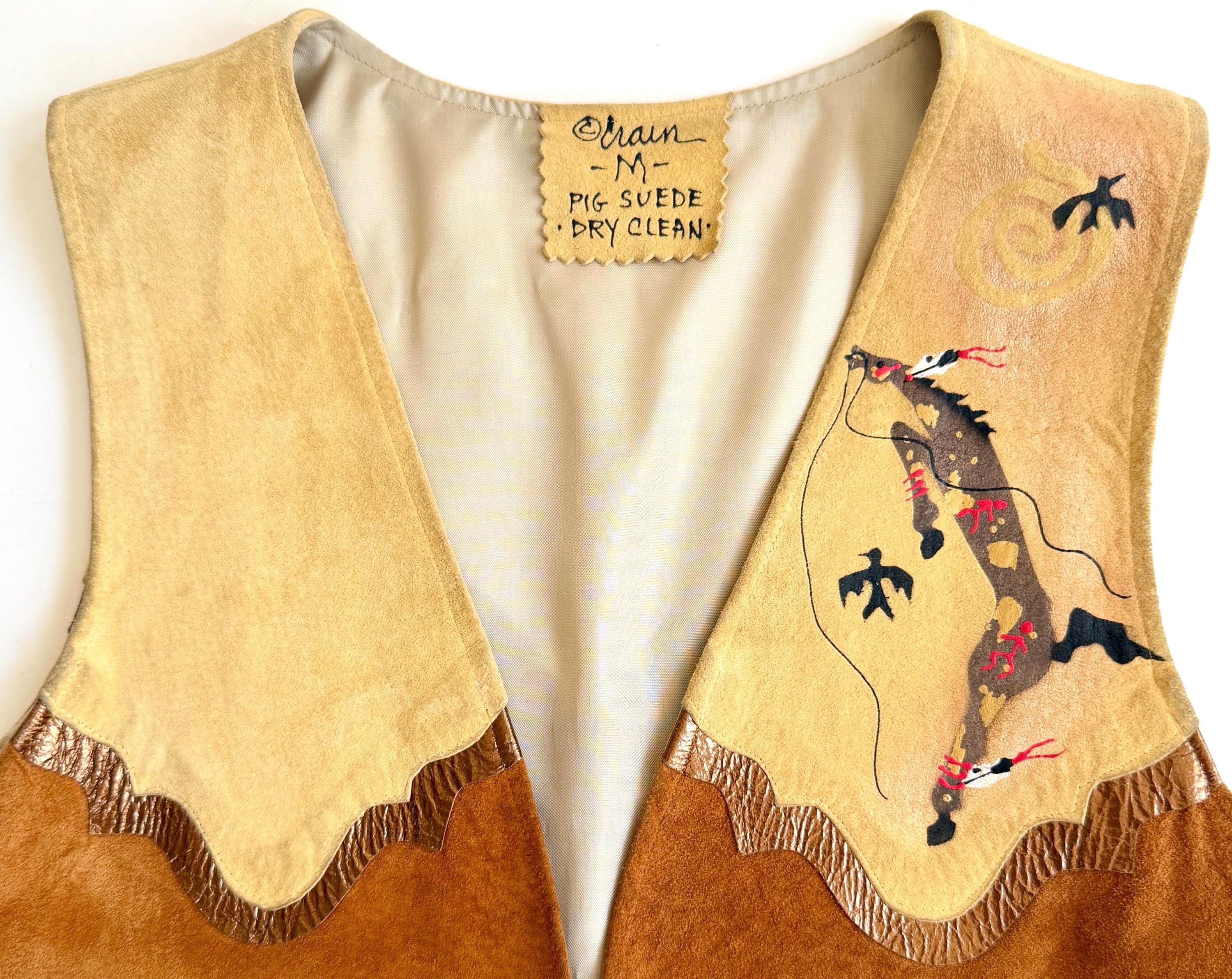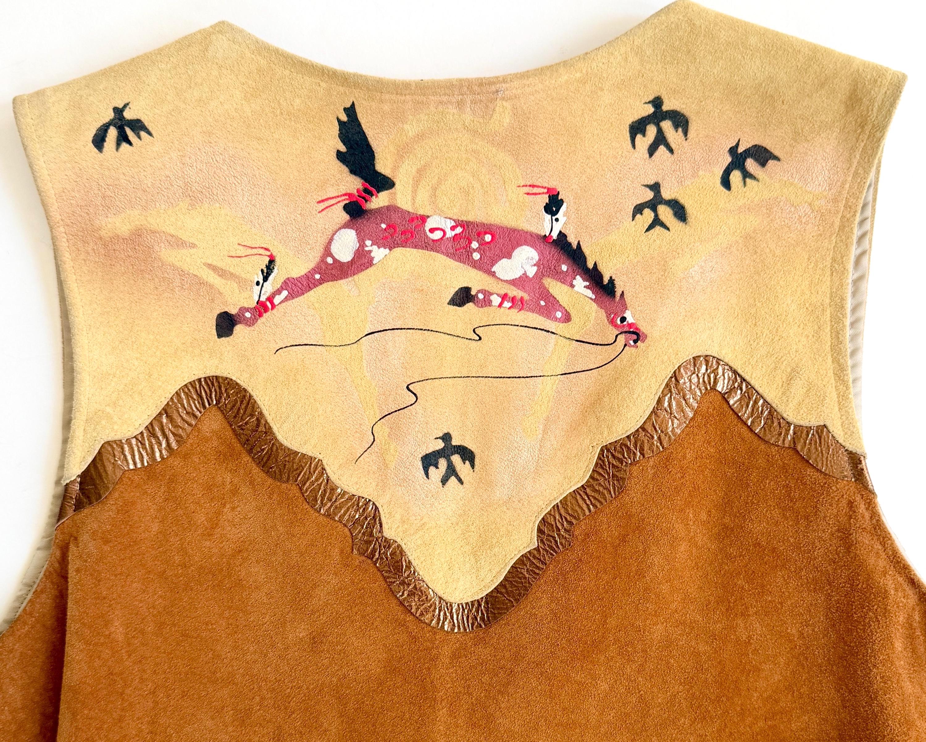 Wearable art! Soft and well crafted pig suede vest with signed hand-painted Southwestern animal images