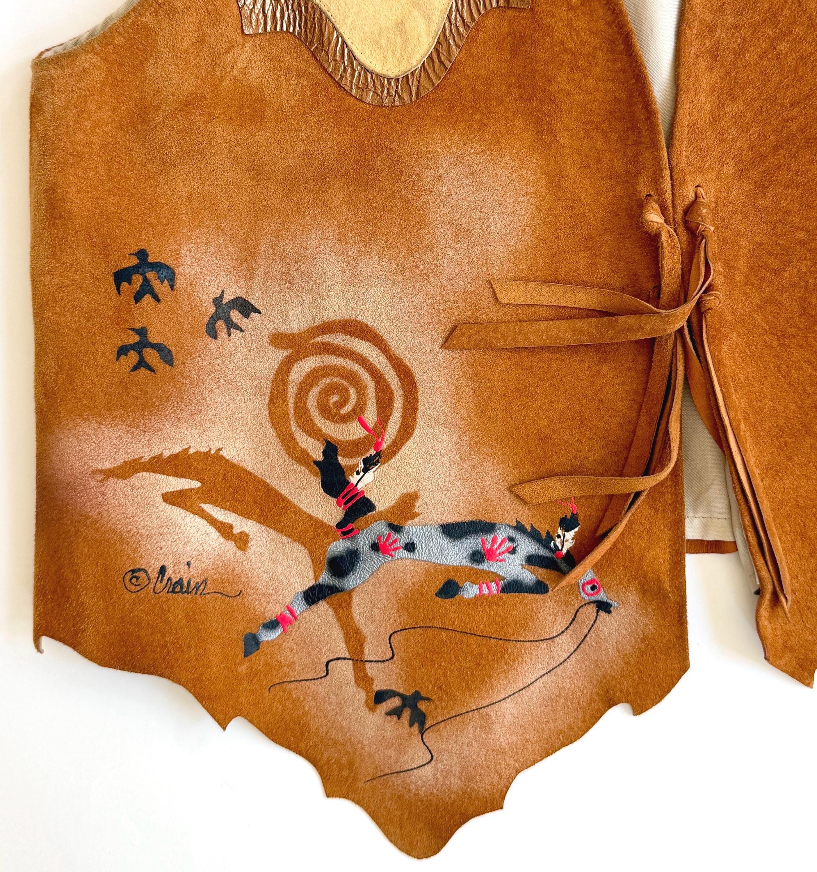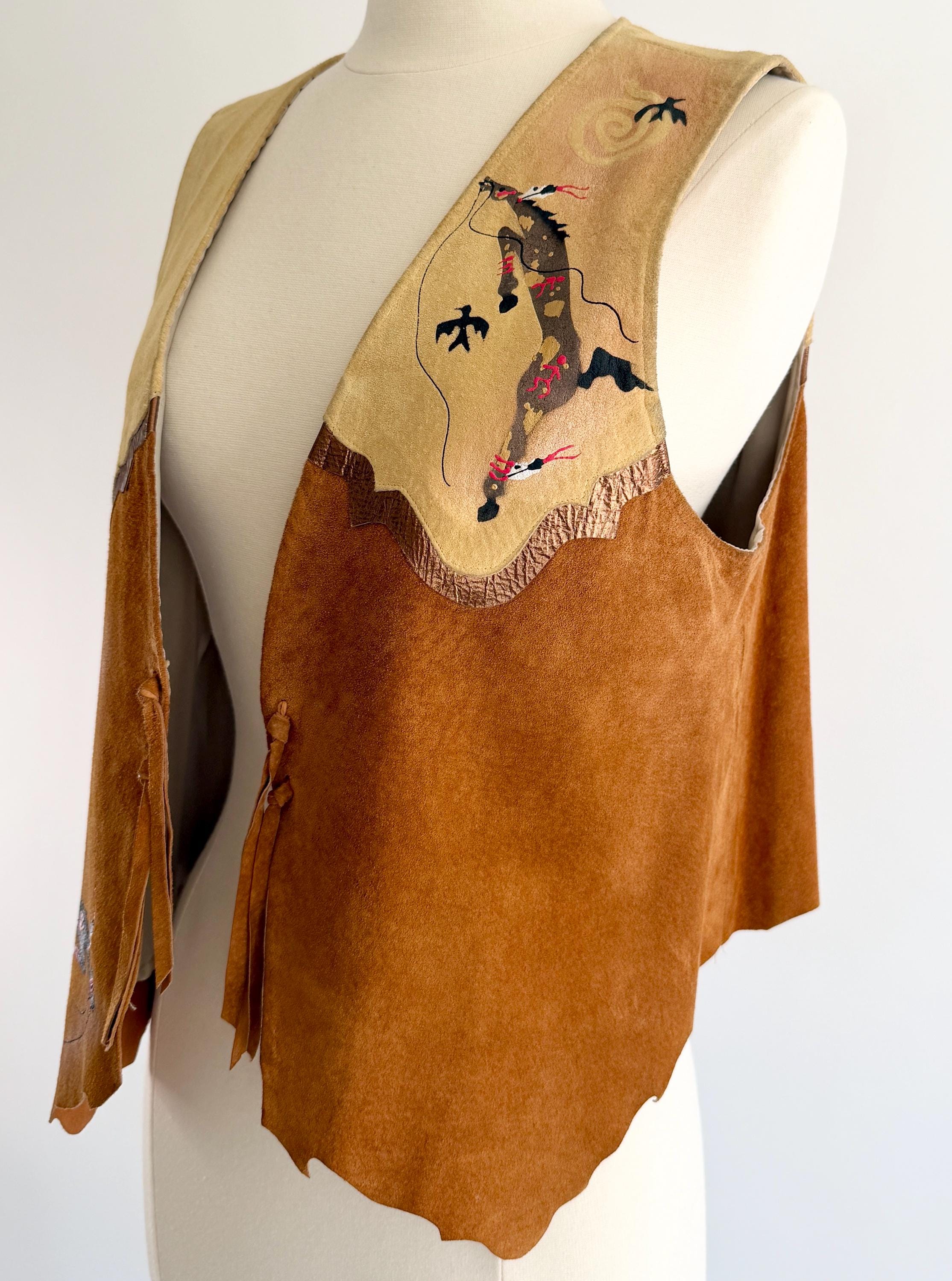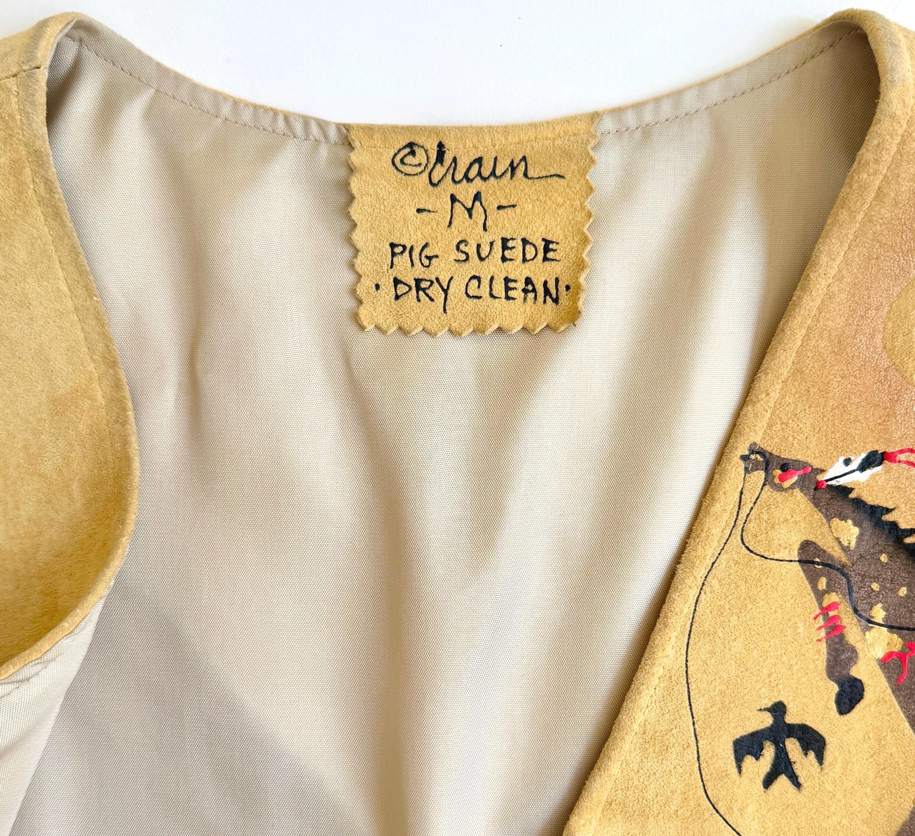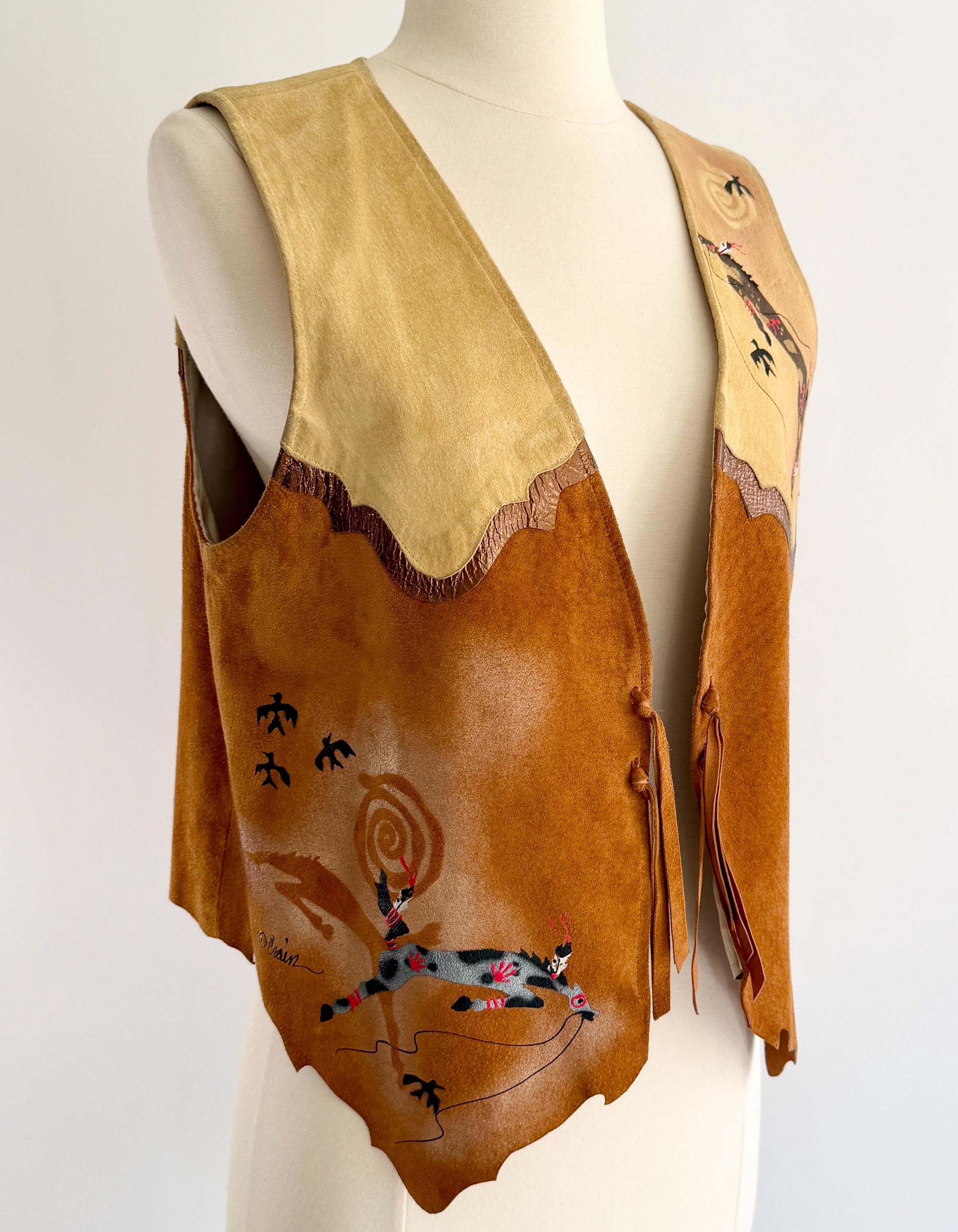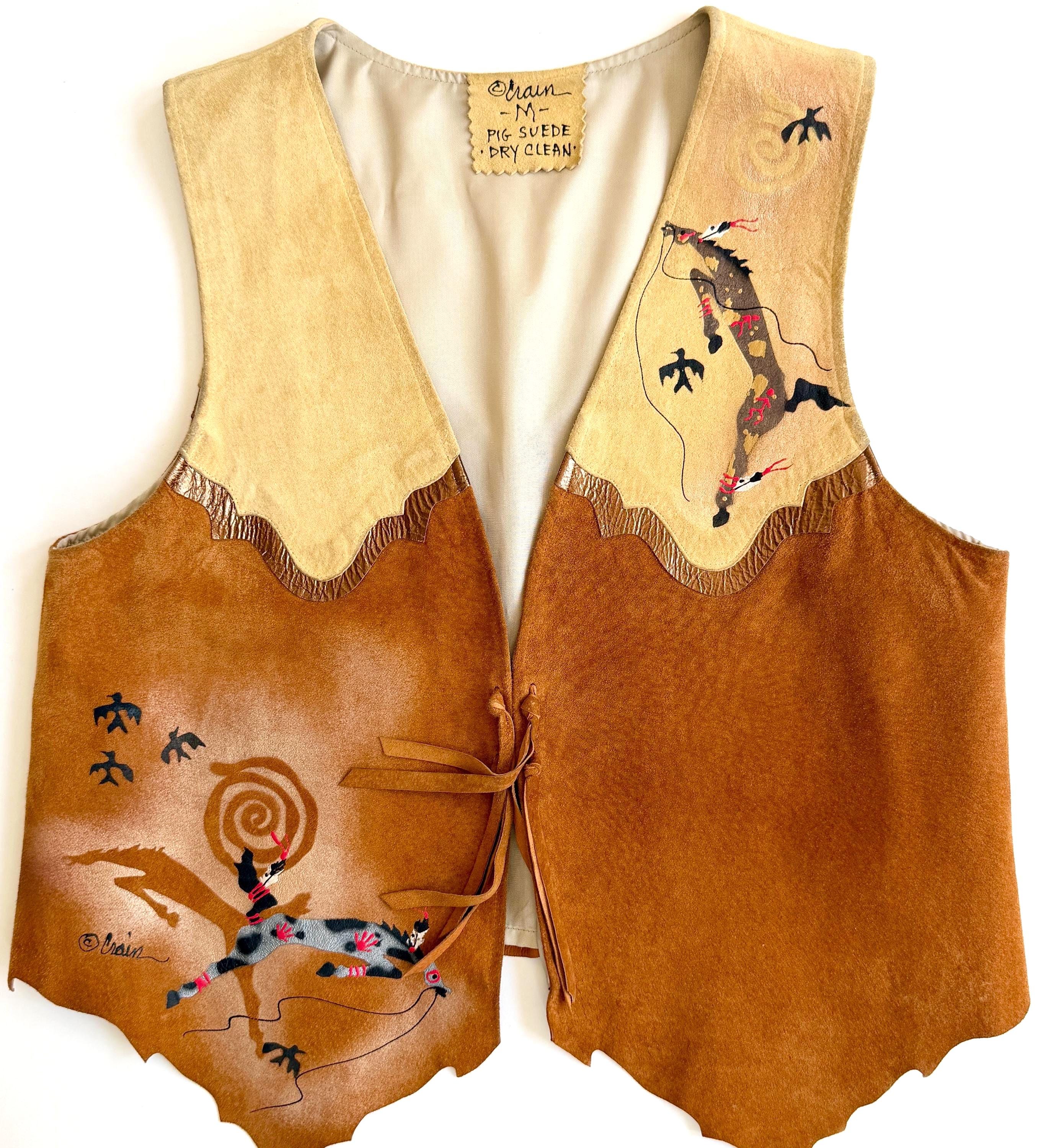 Wearable art! Soft and well crafted pig suede vest with signed hand-painted Southwestern animal images