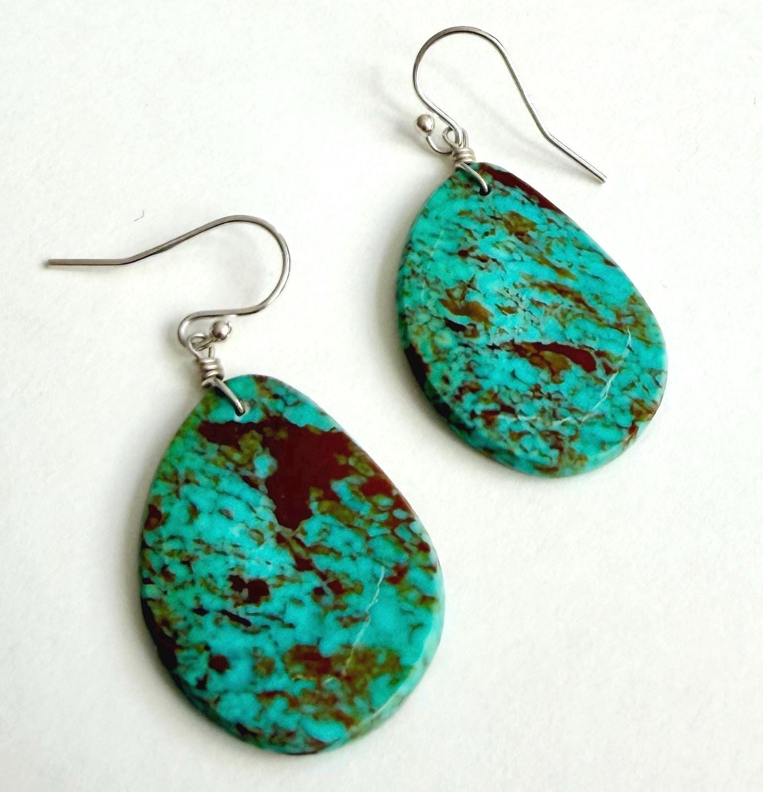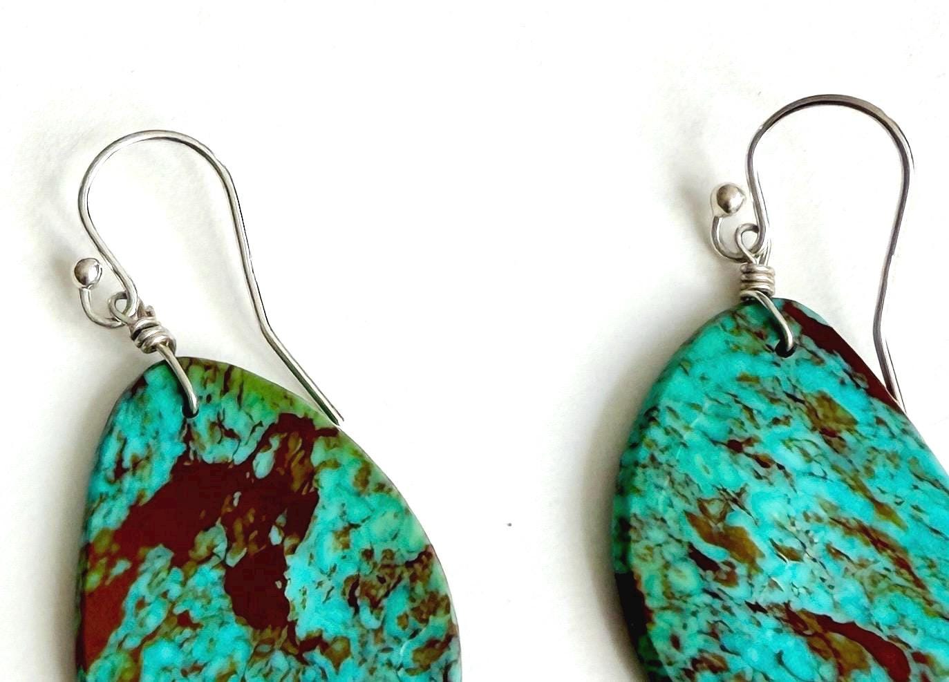 Handmade Native American Santo Domingo turquoise slab earrings