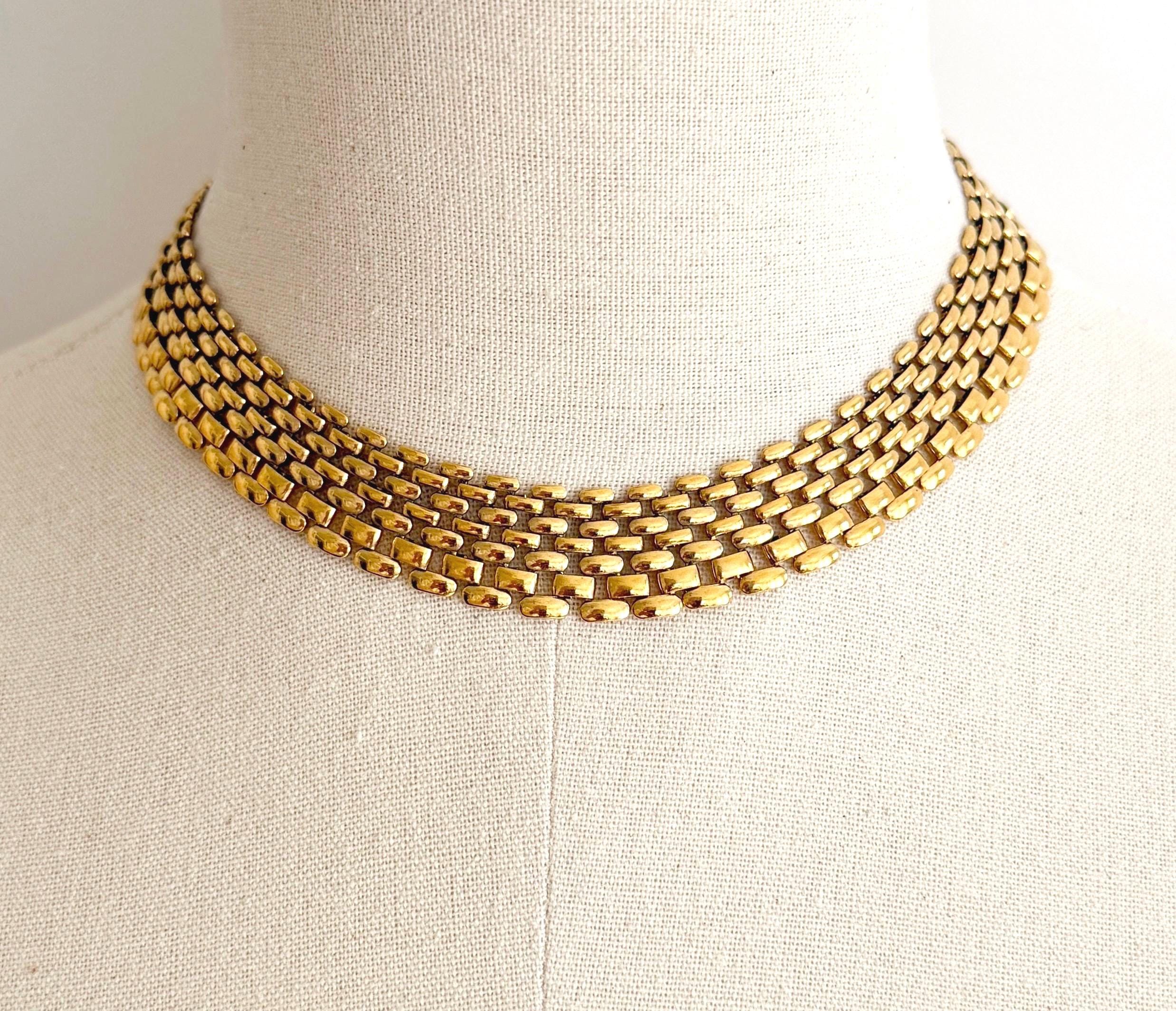 Slinky vintage 80's gold tone link choker necklace