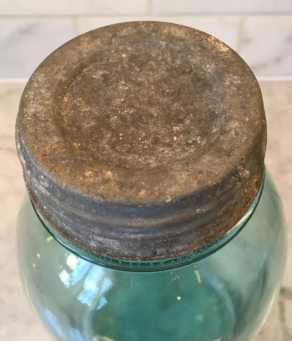 This highly desirable vintage Ball jar was made between 1923-1933 and includes a zinc lid. It is stamped with the number "6" at the bottom.