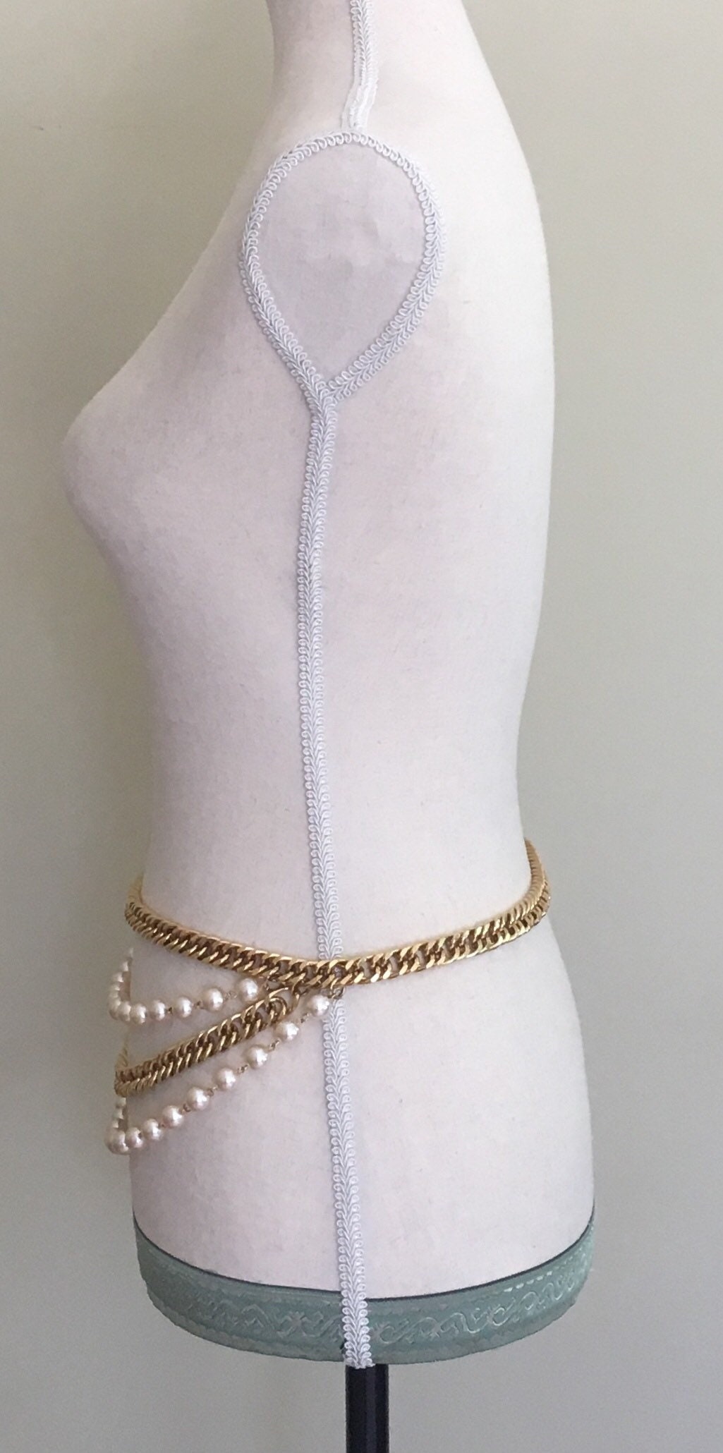 This gorgeous vintage 80's gold-toned chain link belt with pearlized beads is heavy and solidly crafted. Versatile style that's a little bit lady and a little bit rock and roll.
