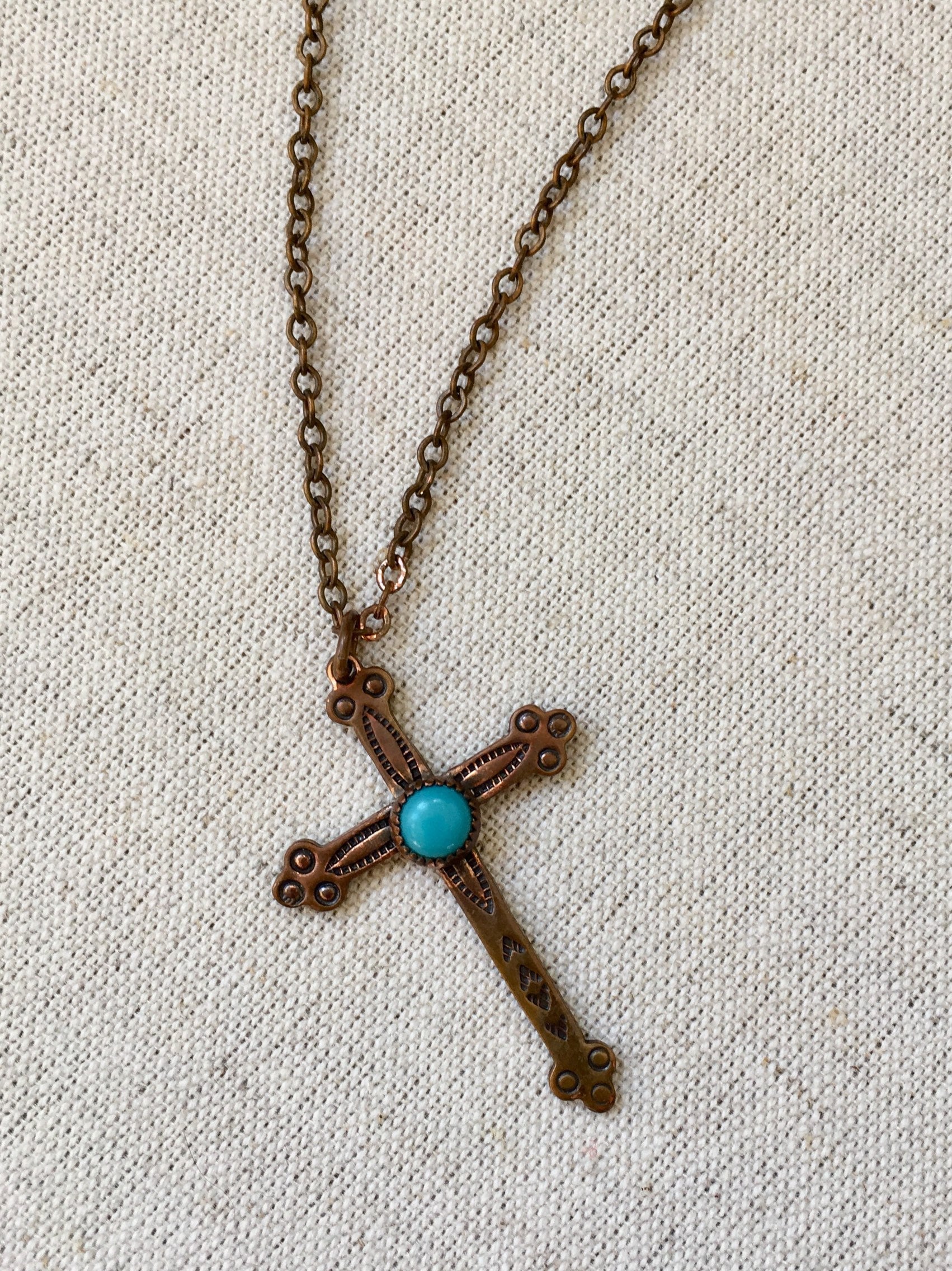 Delicate vintage Native American hand stamped solid copper cross with 18" chain