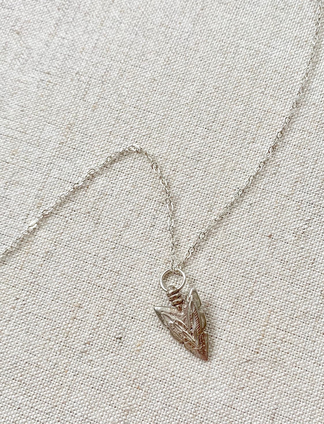 Very delicate and dainty vintage sterling silver arrowhead pendant charm