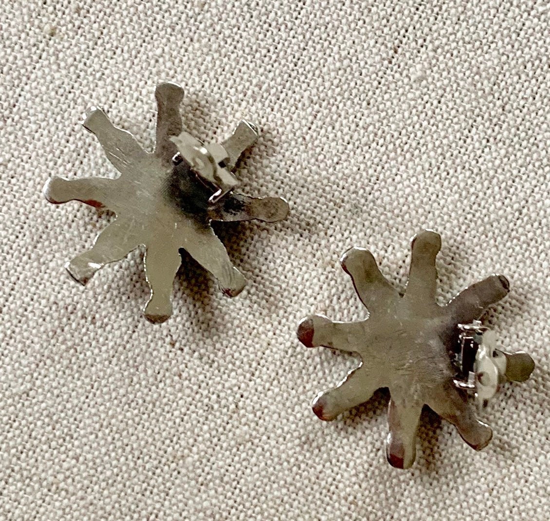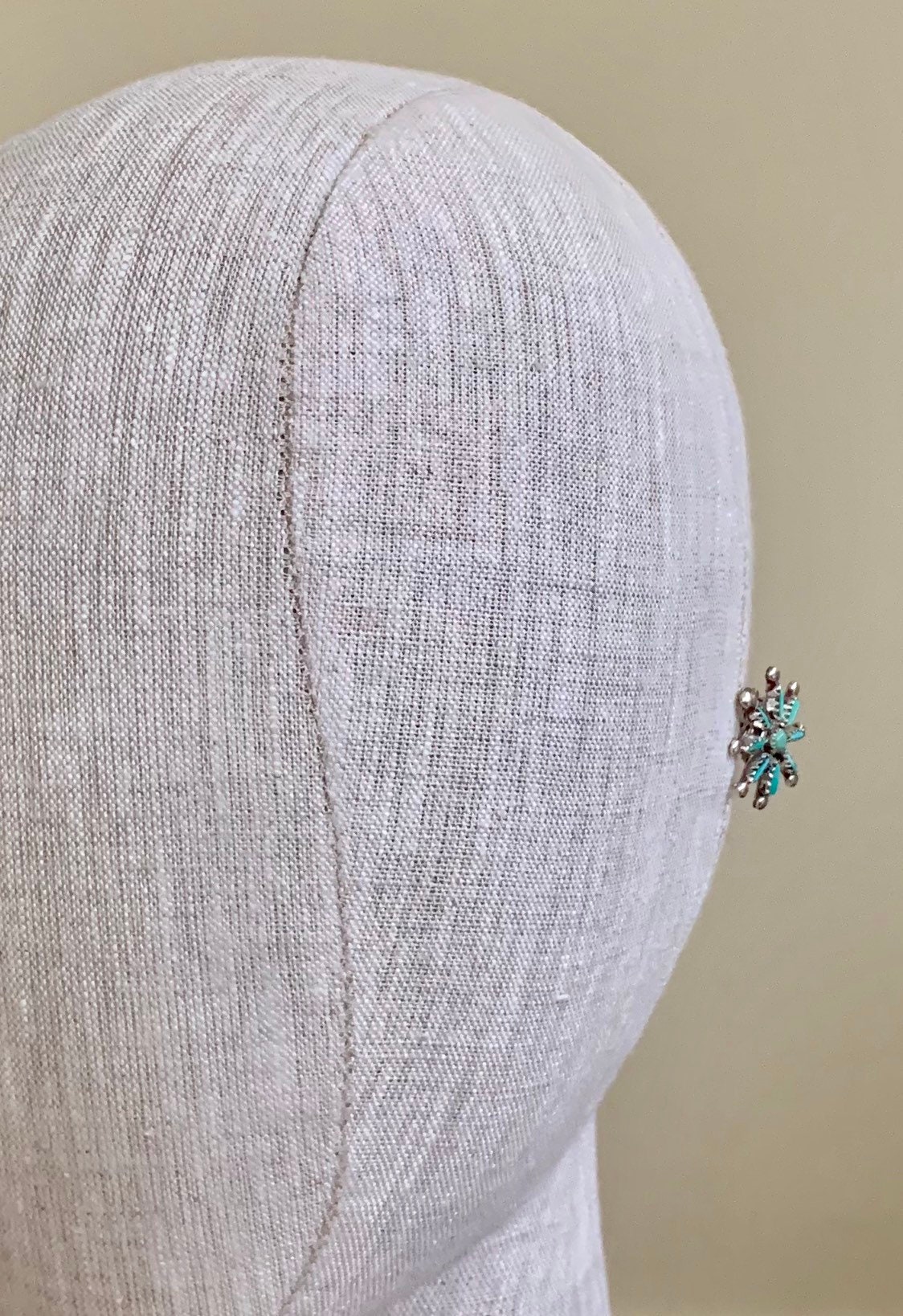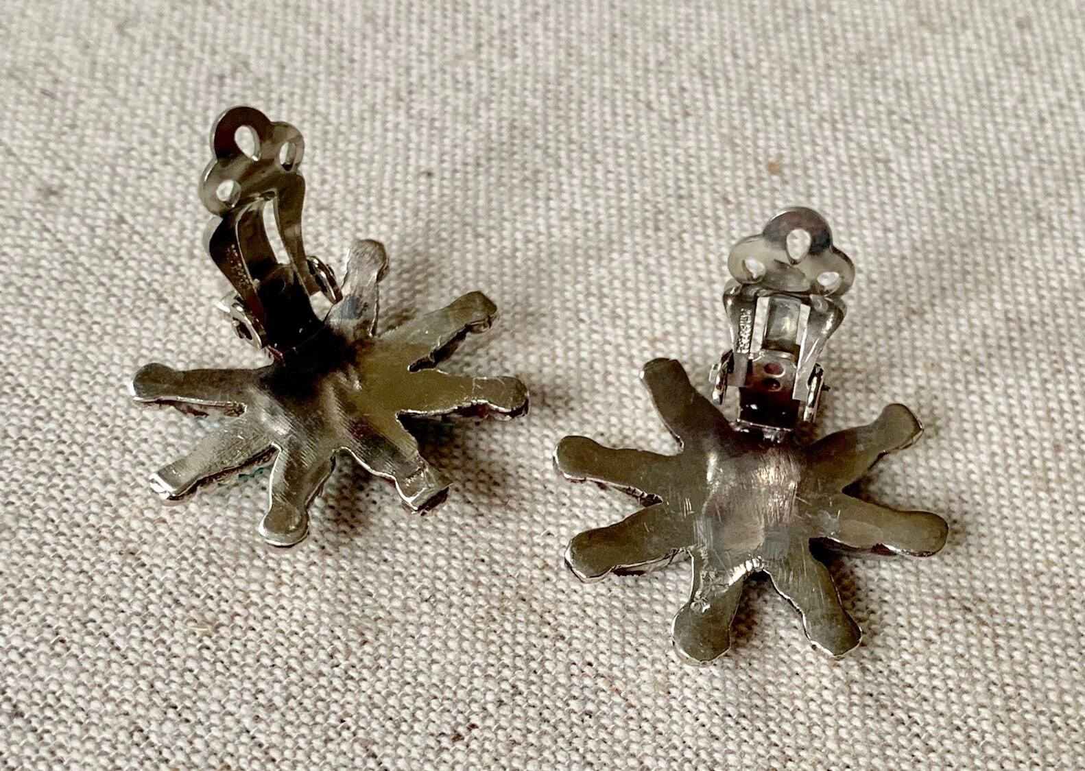 Beautifully crafted vintage 40's Native American Zuni sterling silver and needlepoint turquoise CLIP-ON earrings set in a delicate flower / starburst design