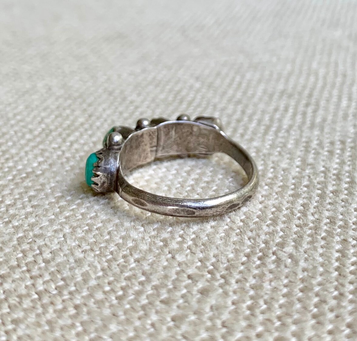 Vintage Native American Zuni sterling silver & rustic petit point turquoise ring