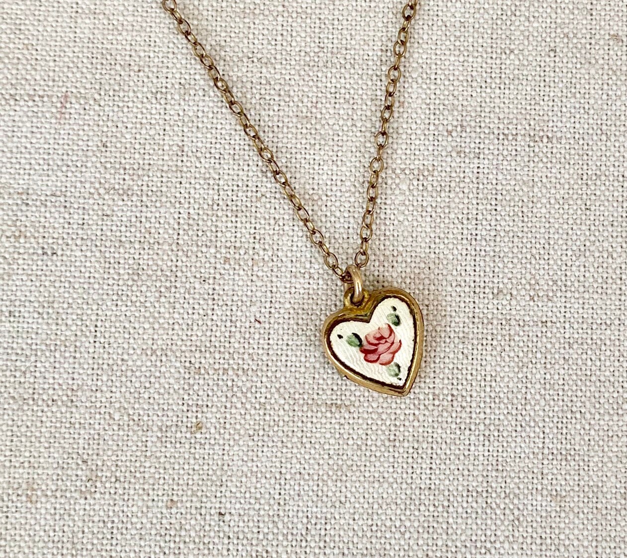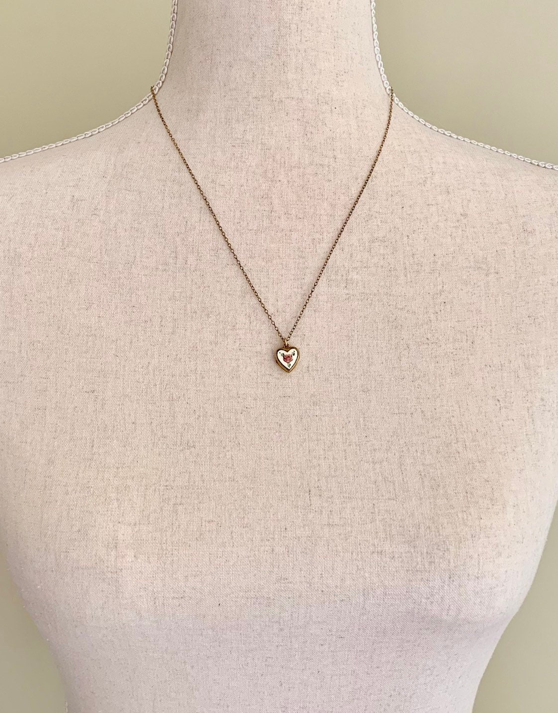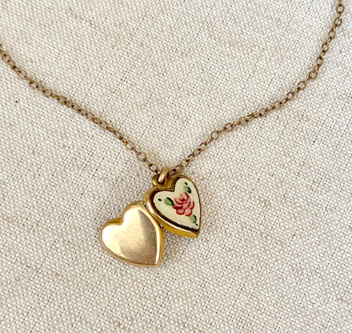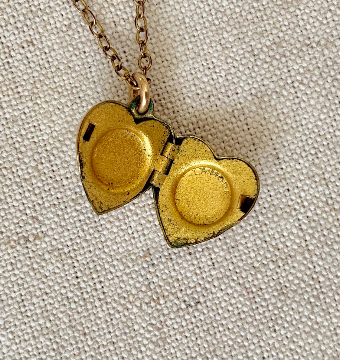 Tiny vintage 40's La Mode heart locket necklace.