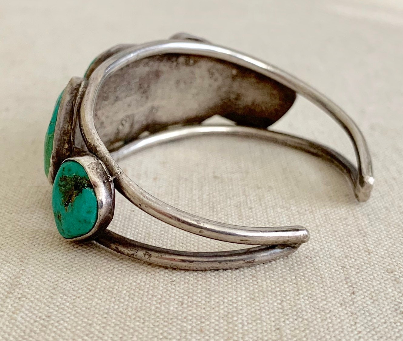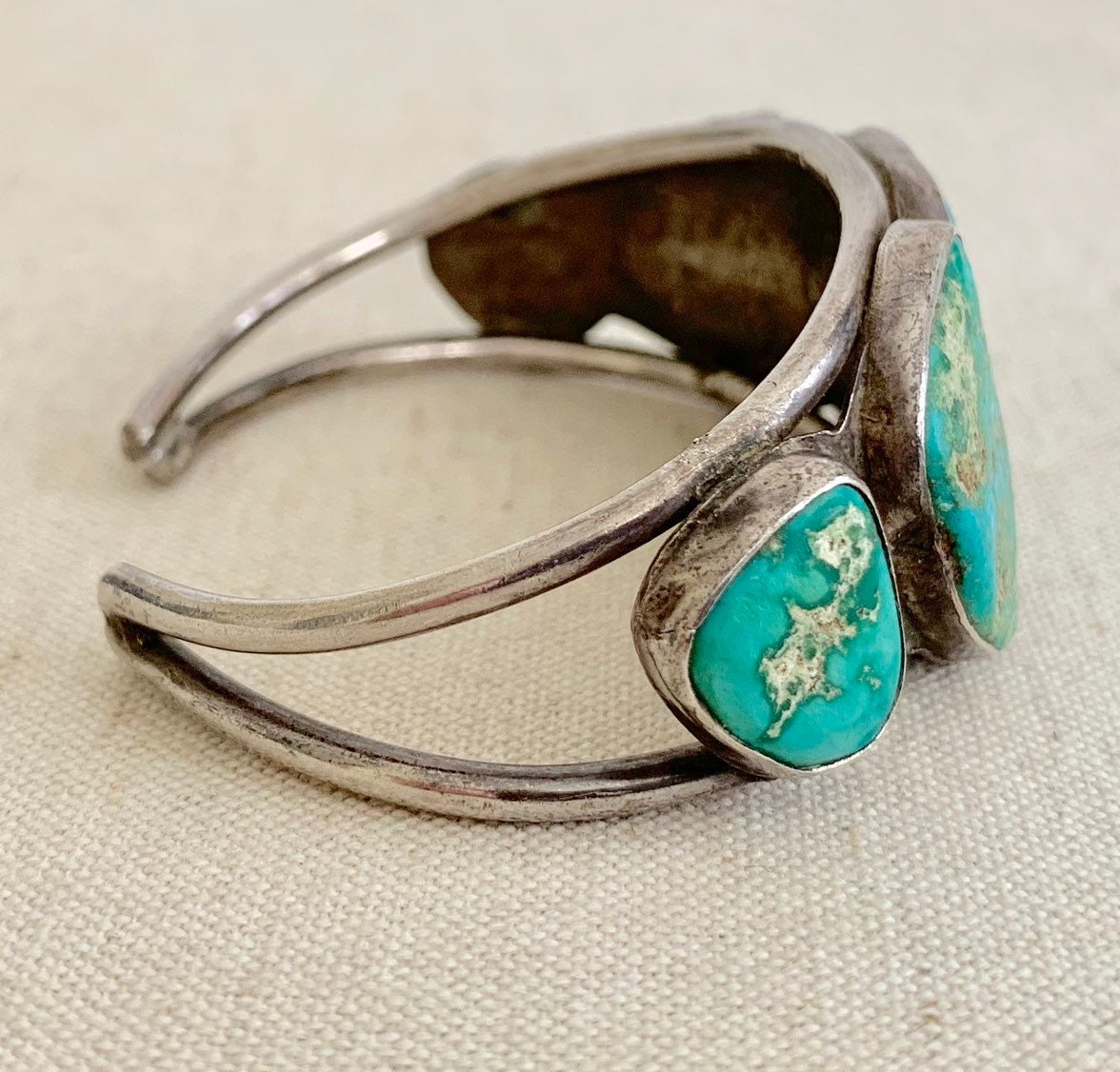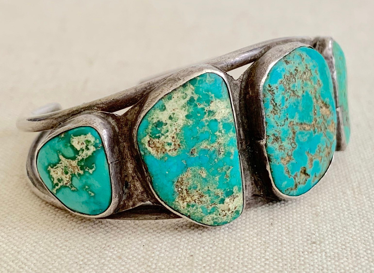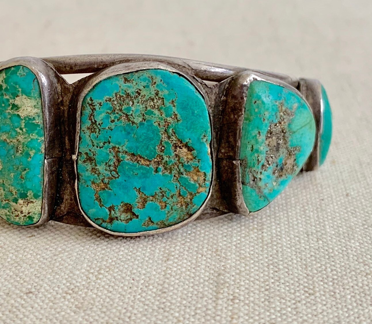 Old vintage Native American Navajo cuff bracelet with five rustic turquoise nugget stones