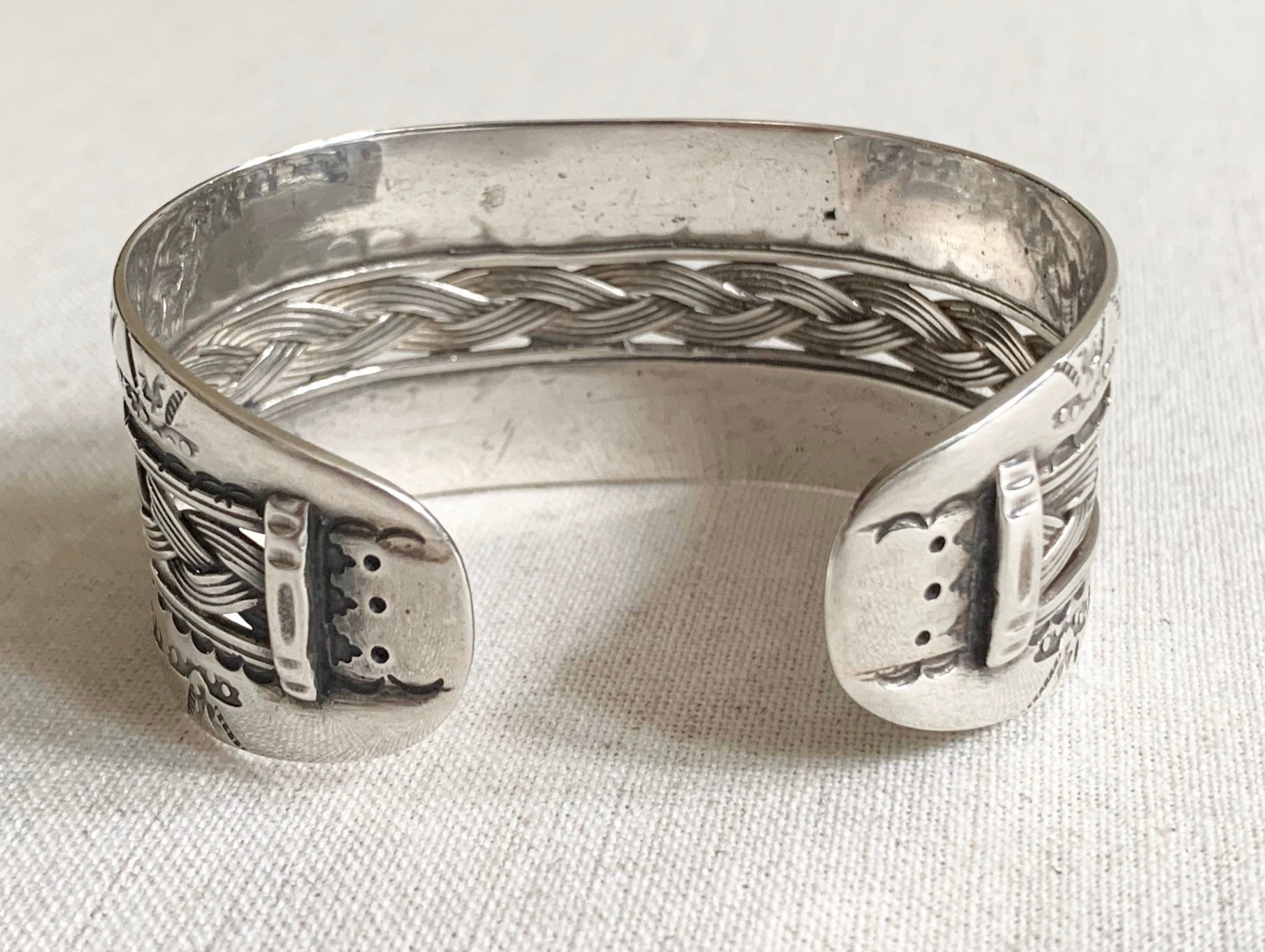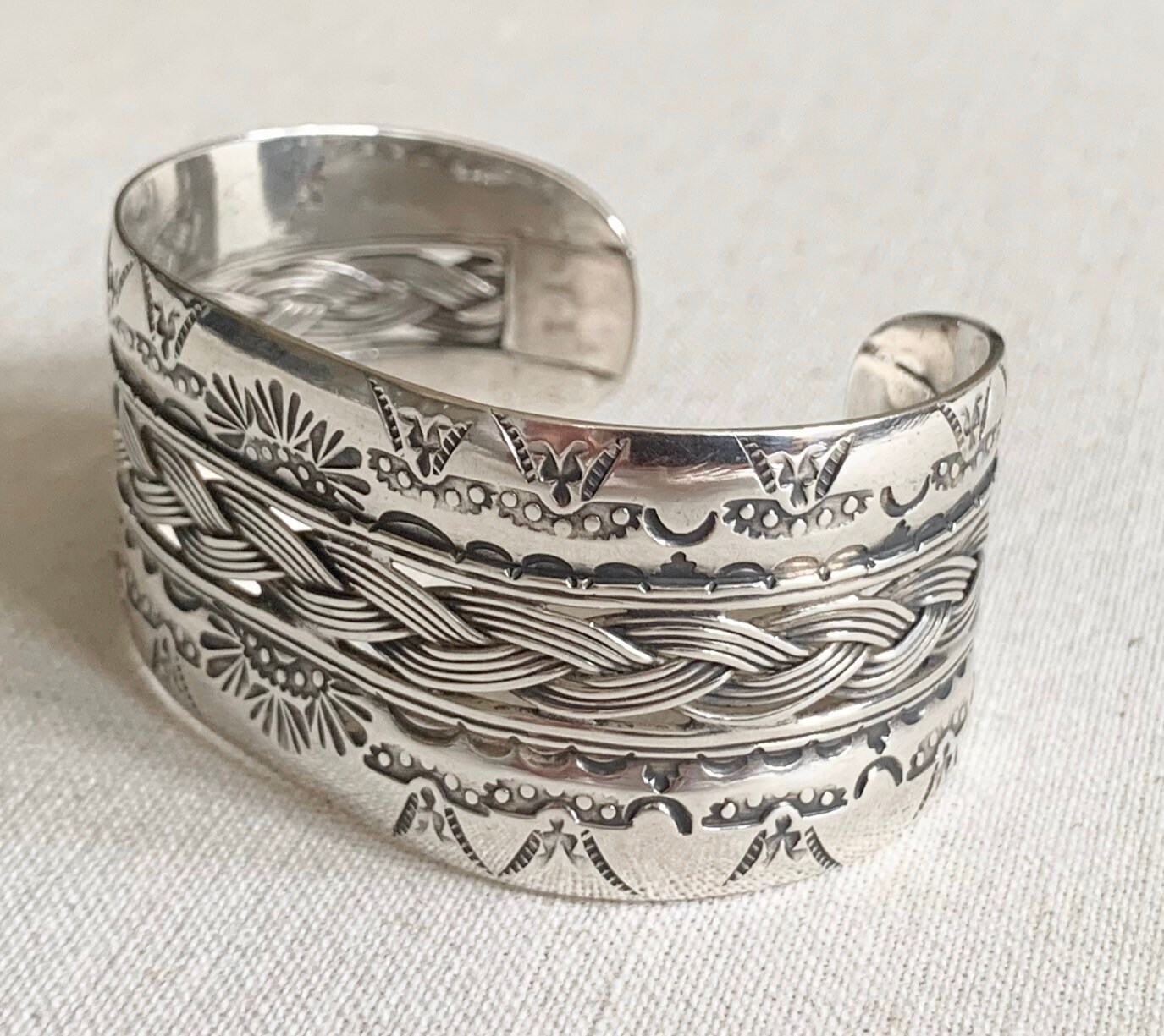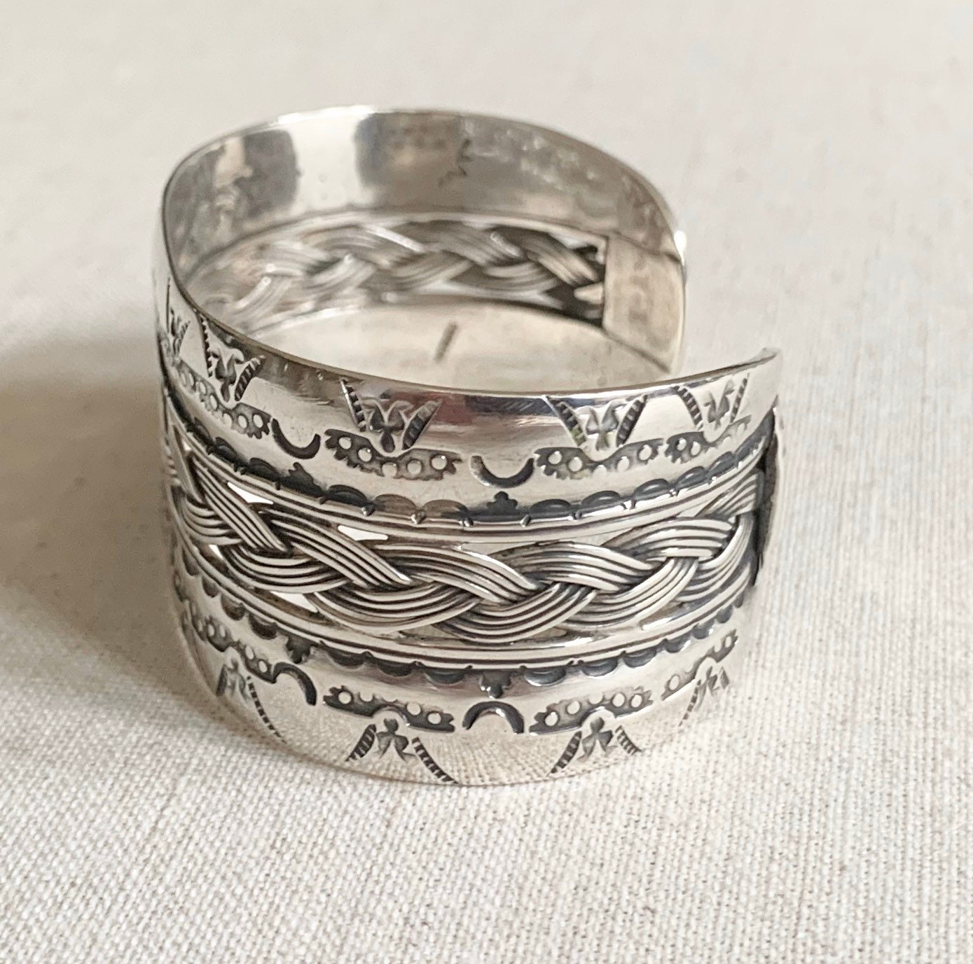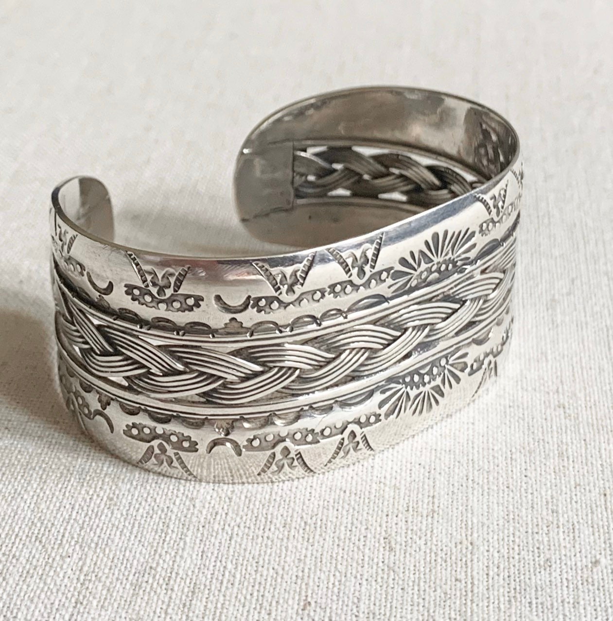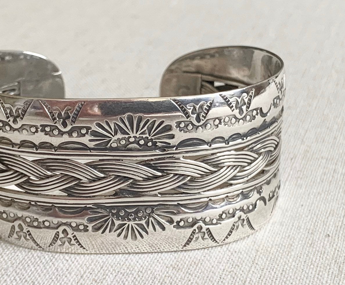 Heavy hand-stamped vintage Native American Navajo sterling cuff bracelet