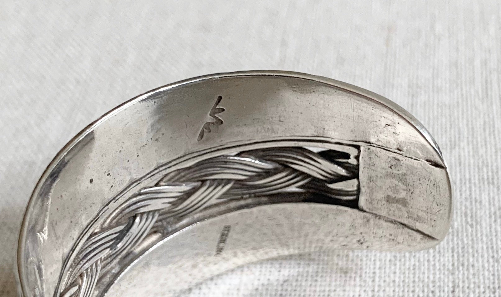 Artist hallmarked (I can't identify) and stamped "STERLING"