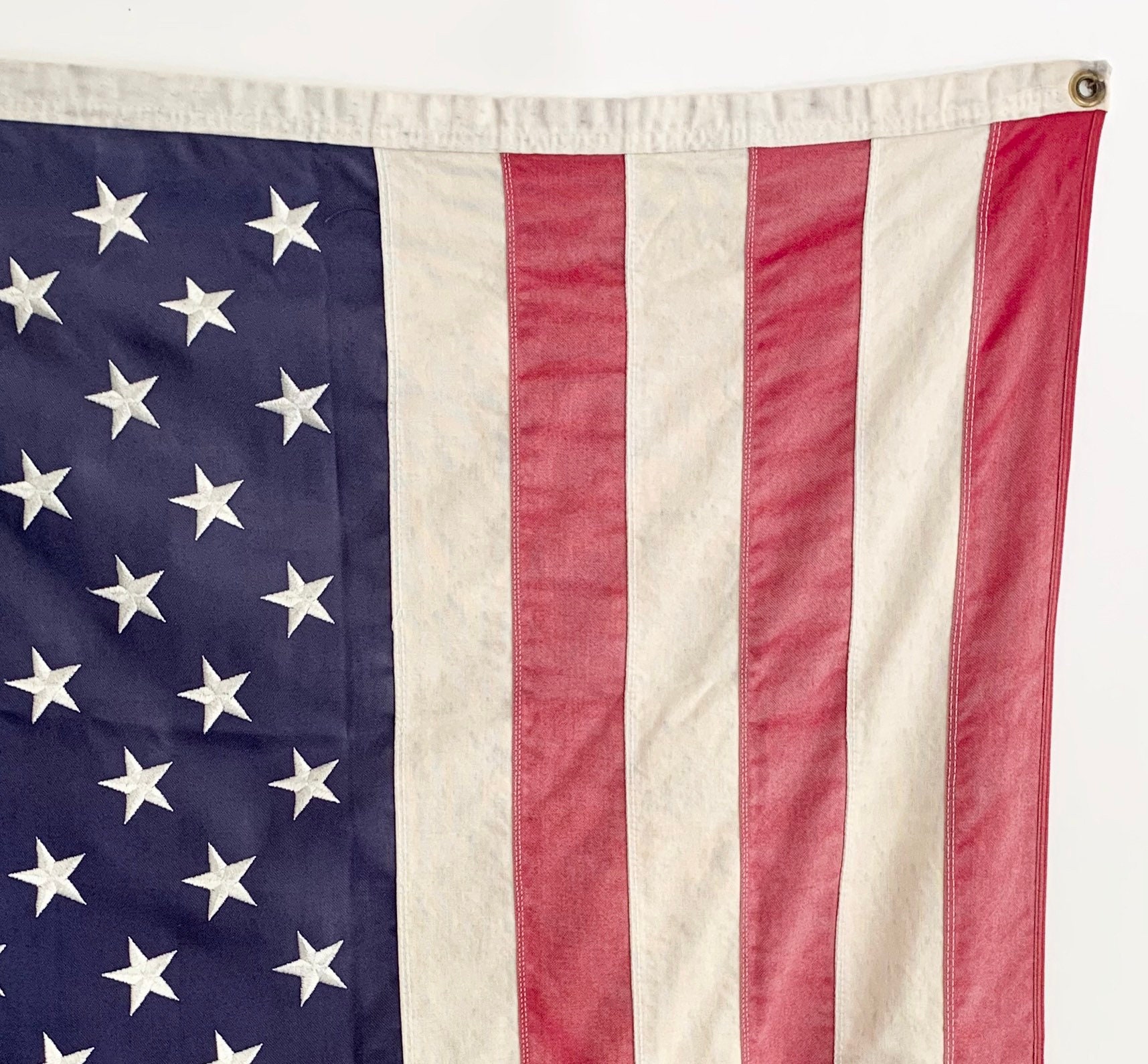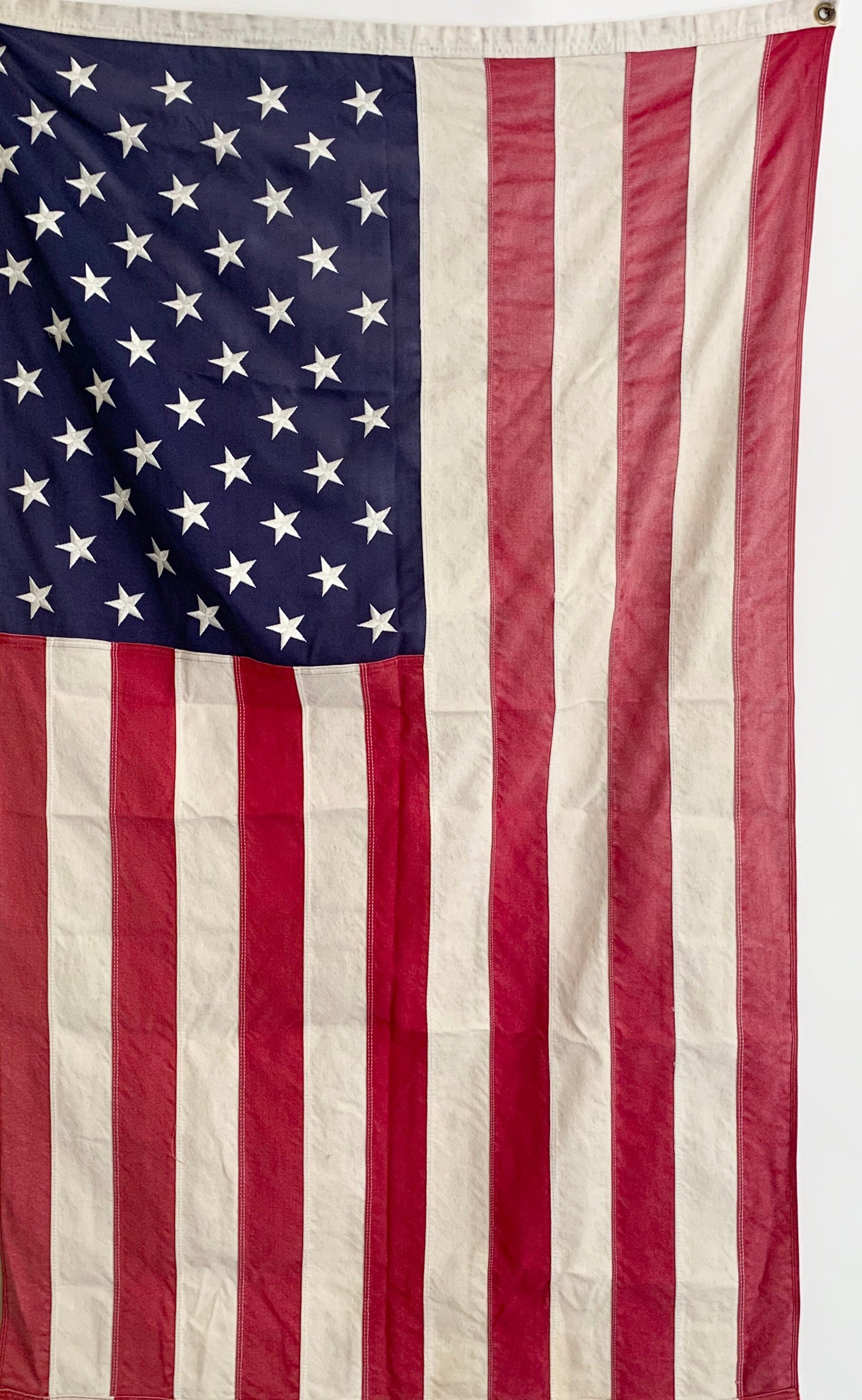 Faded vintage fabric American flag with stitched stars