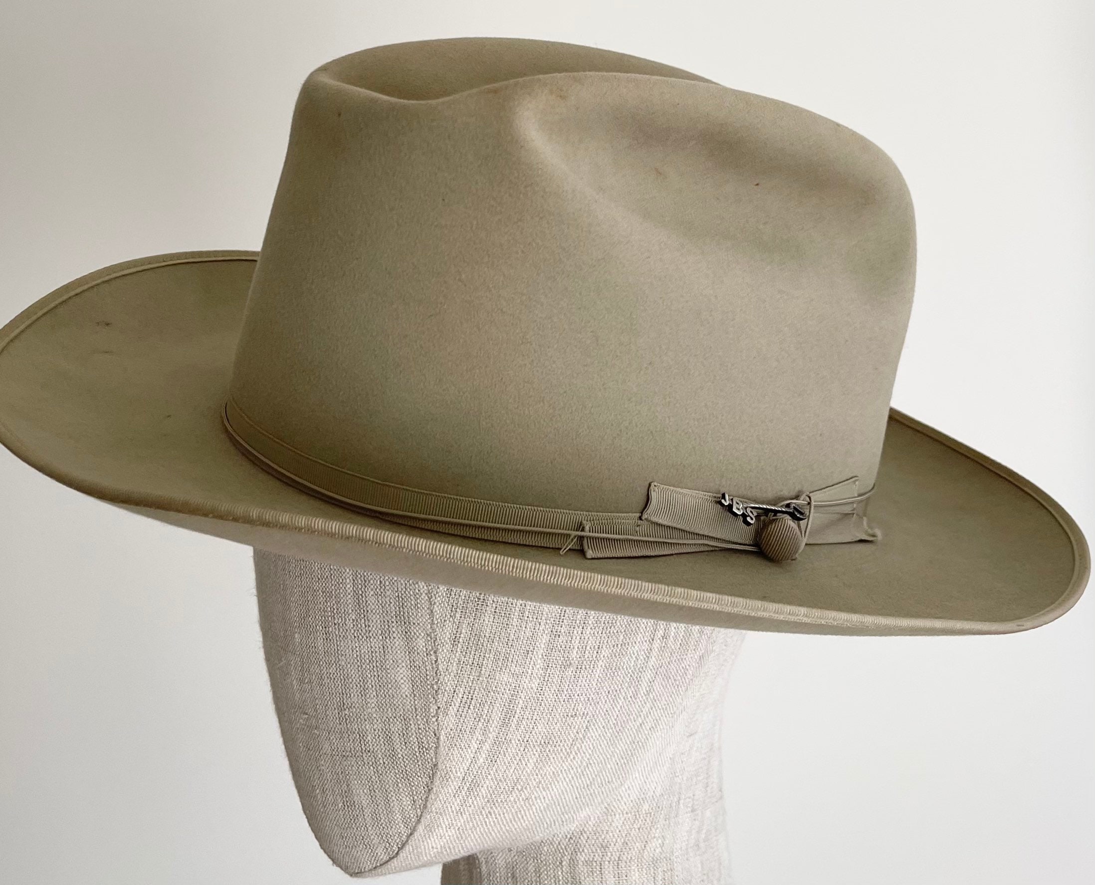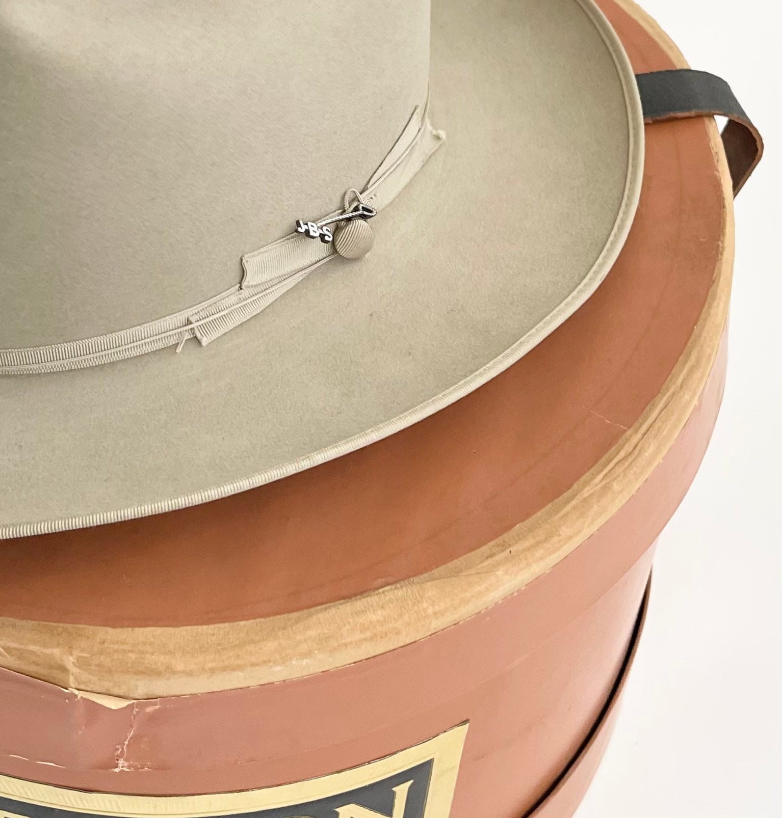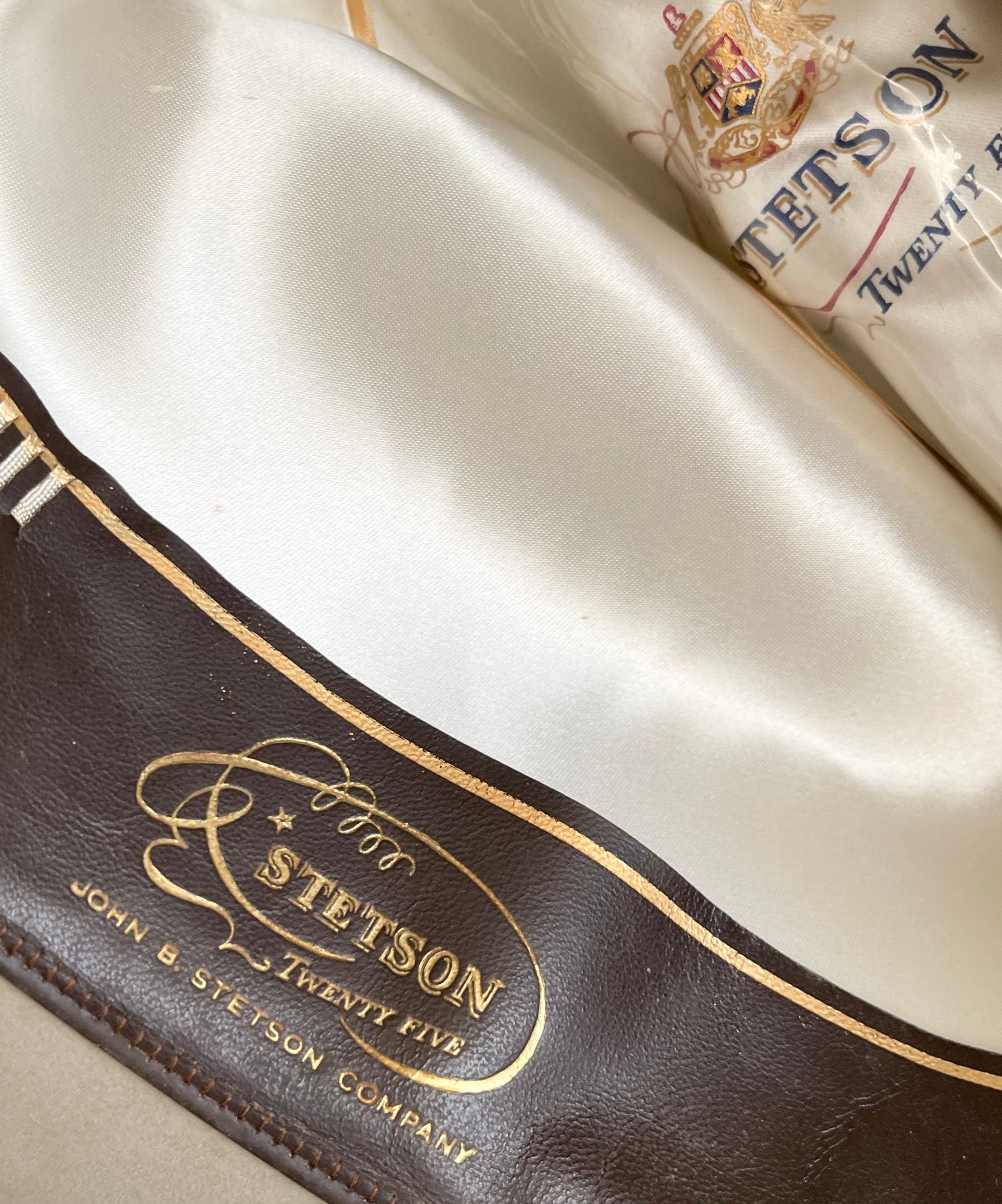 Fabulous vintage John B. Stetson "Twenty Five" Open Road-style hat with JBS branding iron hat pin